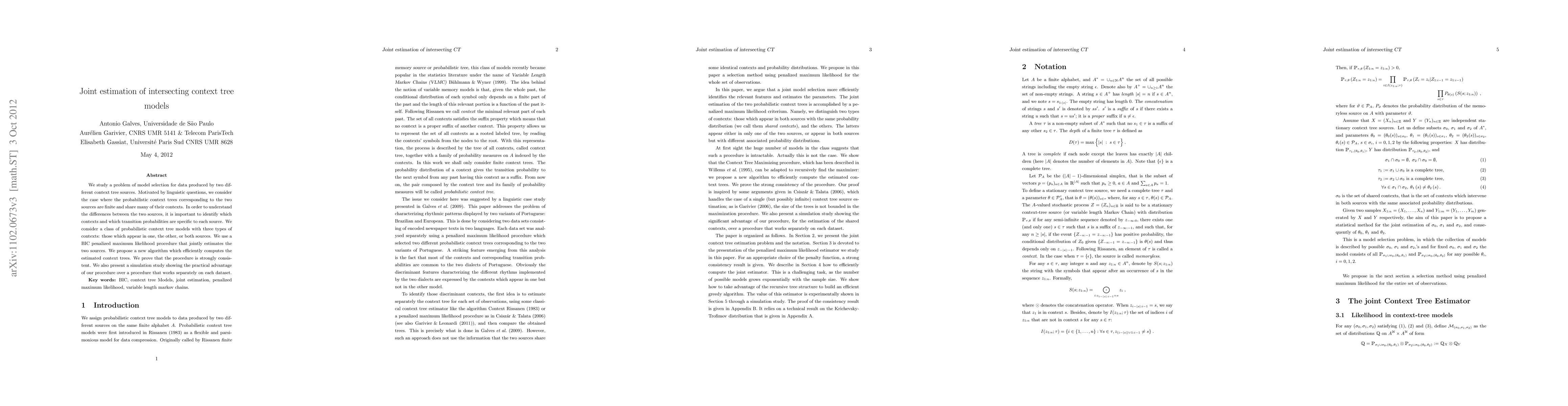 Researchers developed a new method to jointly estimate two probabilistic context tree models from different data sources, improving model selection for understanding differences between the sources.