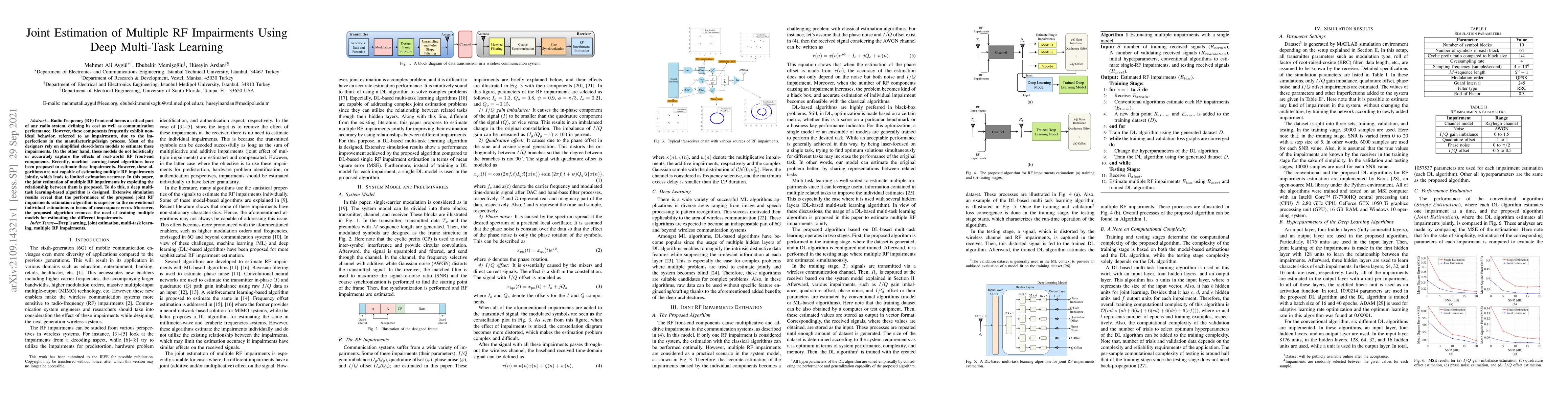This paper proposes a deep multi-task learning algorithm for joint estimation of multiple RF impairments, improving accuracy over individual estimation methods. The approach leverages relationships between impairments and outperforms conventional methods in terms of mean-square error, eliminating the need for separate models for each impairment.