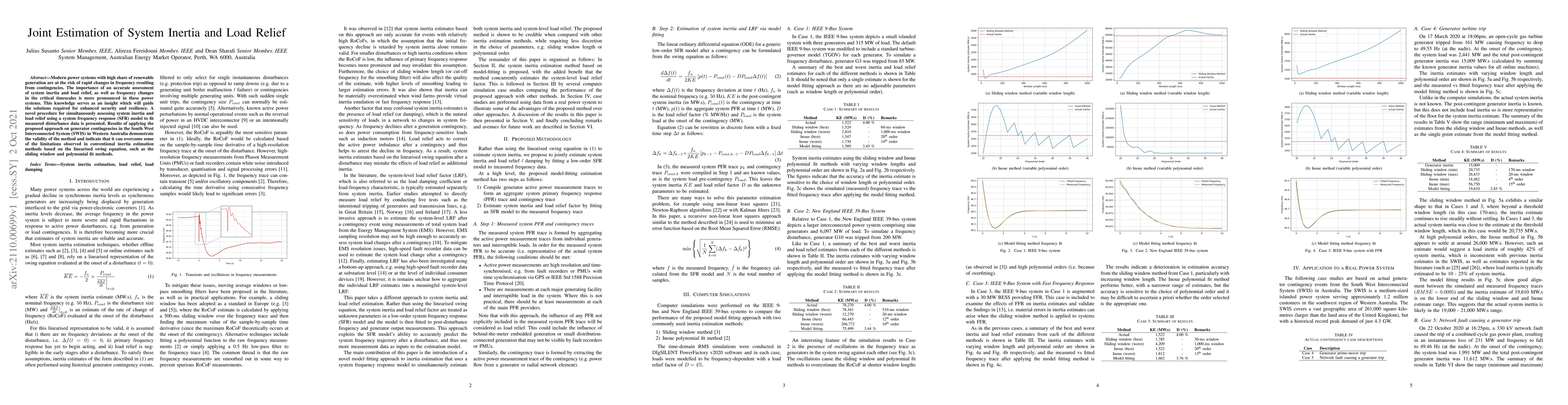 Modern power systems with high share of renewable generation are at the risk of rapid changes in frequency and inertia resulting from contingencies. The importance of an accurate assessment of system and load relief, as well as frequency changes in the critical timescales is more pronounced in these power systems. This knowledge serves as an insight which will guide the solutions required for enhanced security and resilience. A novel procedure for simultaneously assessing system inertia and load relief using a closed-form system frequency response (SFR) model to fit measured disturbance data is presented. Results of applying the proposed approach on generator contingencies in the South West Interconnected System (SWIS) in Western Australia demonstrate the validity of the method and indicate that it can overcome some of the limitations observed in conventional inertia estimation methods based on the linearised swing equation, such as the sliding window and polynomial fit methods.