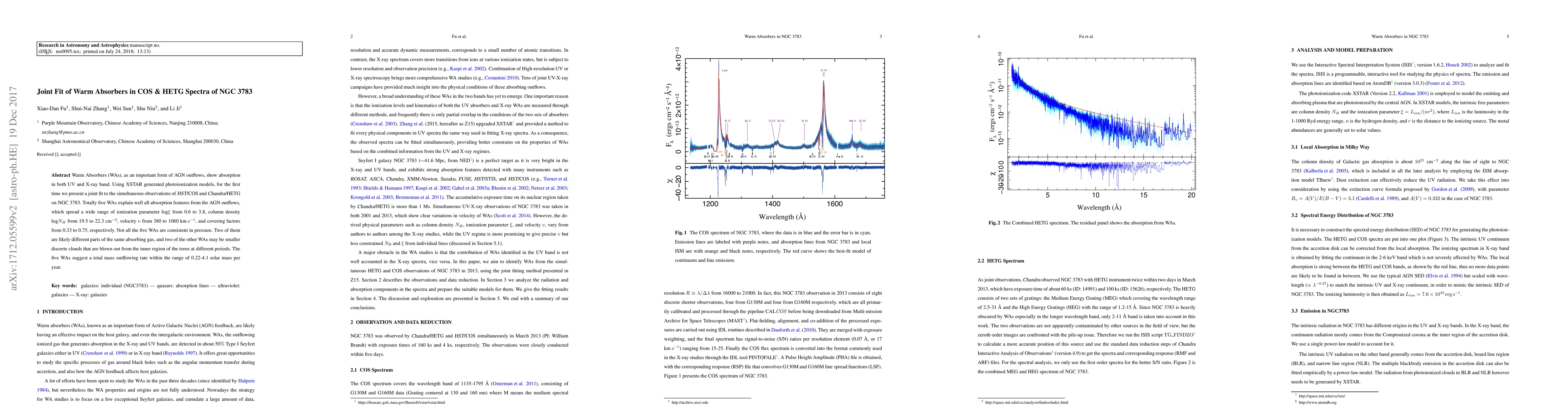 Warm Absorbers (WAs), as an important form of AGN outflows, show absorption in both UV and X-ray band. Using XSTAR generated photoionization models, for the first time we present a joint fit to the simultaneous observations of HST/COS and Chandra/HETGS on NGC 3783. A total of five WAs explain well all absorption features from the AGN outflows, which are spread over a wide range of parameters: ionization parameter log{\xi} from 0.6 to 3.8, column density log N_H from 19.5 to 22.3 cm^{-2}, velocity v from 380 to 1060 km s^{-1}, and covering factor from 0.33 to 0.75. Not all the five WAs are consistent in pressure. Two of them are likely different parts of the same absorbing gas, and two of the other WAs may be smaller discrete clouds that are blown out from the inner region of the torus at different periods. The five WAs suggest a total mass outflowing rate within the range of 0.22-4.1 solar mass per year.