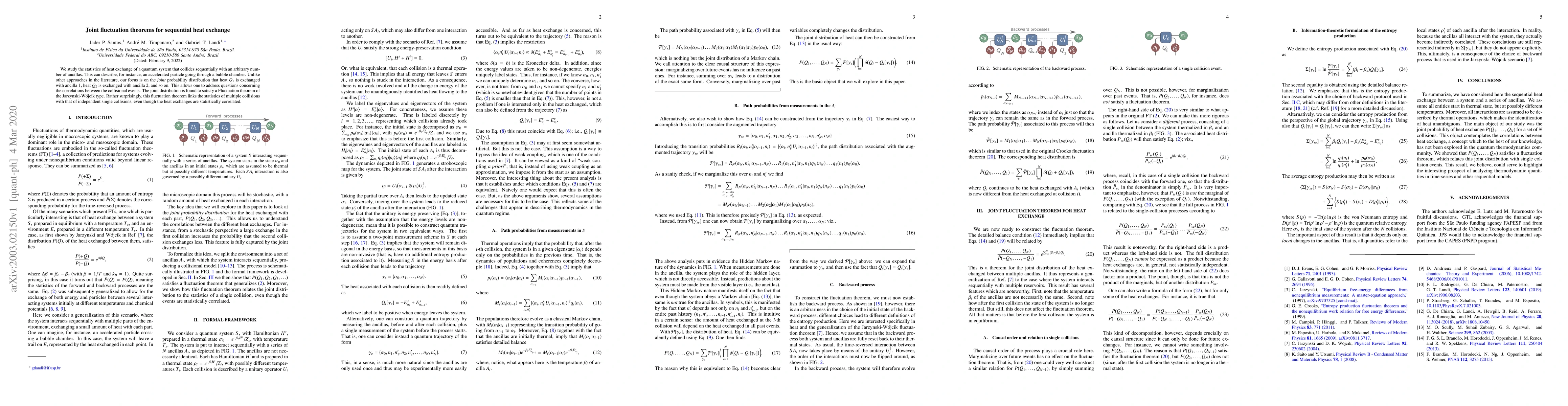 This paper investigates the joint probability distribution of sequential heat exchanges in a quantum system interacting with multiple ancillas, revealing a fluctuation theorem that connects the statistics of correlated multiple collisions to those of independent single collisions. The findings provide insights into the correlations between sequential collisional events.