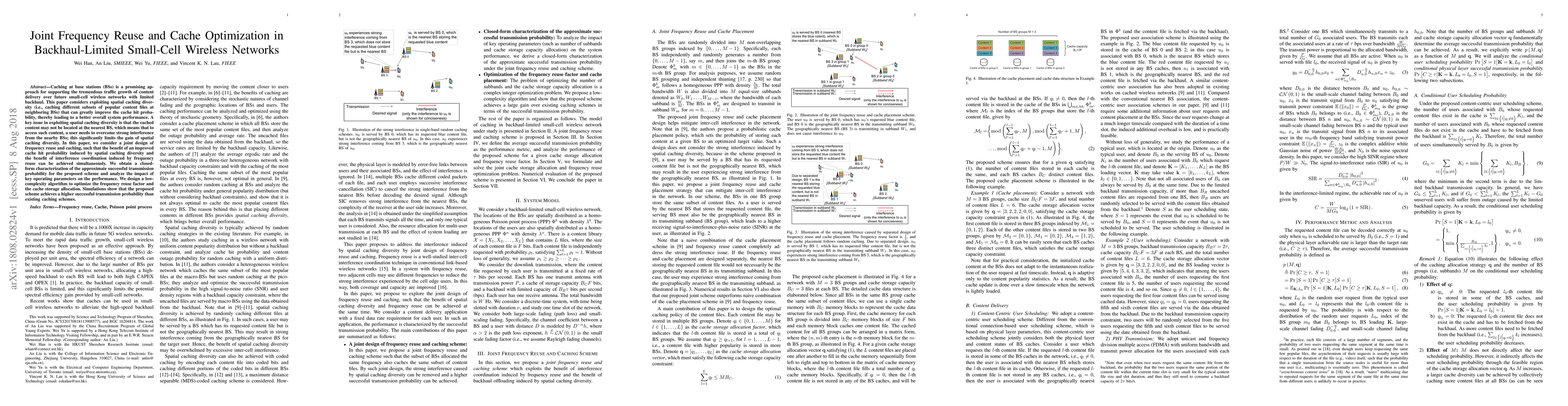 This paper proposes a joint frequency reuse and cache optimization strategy for backhaul-limited small-cell networks to enhance content delivery. The approach leverages spatial caching diversity and interference coordination to improve cache hit probability and successful transmission probability, achieving better overall system performance.