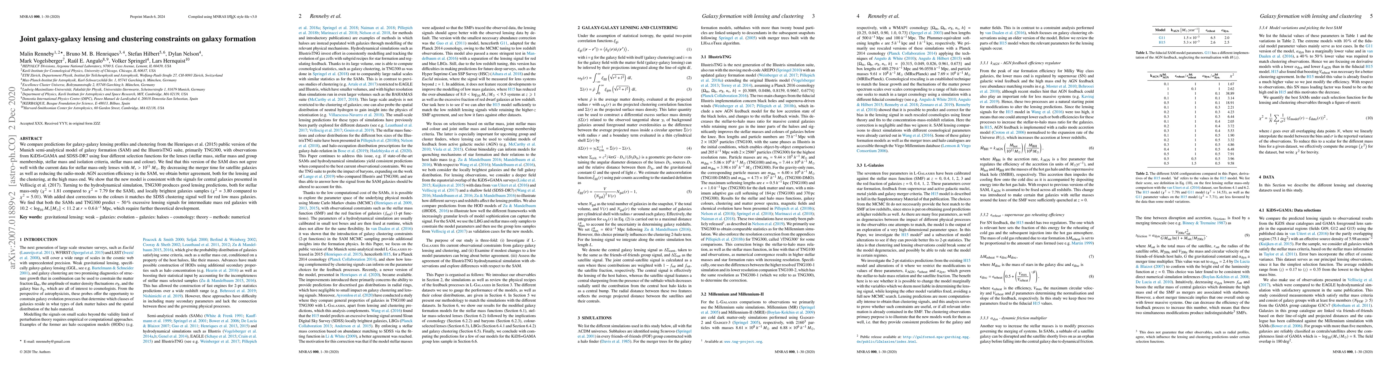 This study compares galaxy formation models with observational data on lensing profiles and clustering, finding that a revised model improves agreement for high-mass galaxies and hydrodynamic simulations match some observations.
