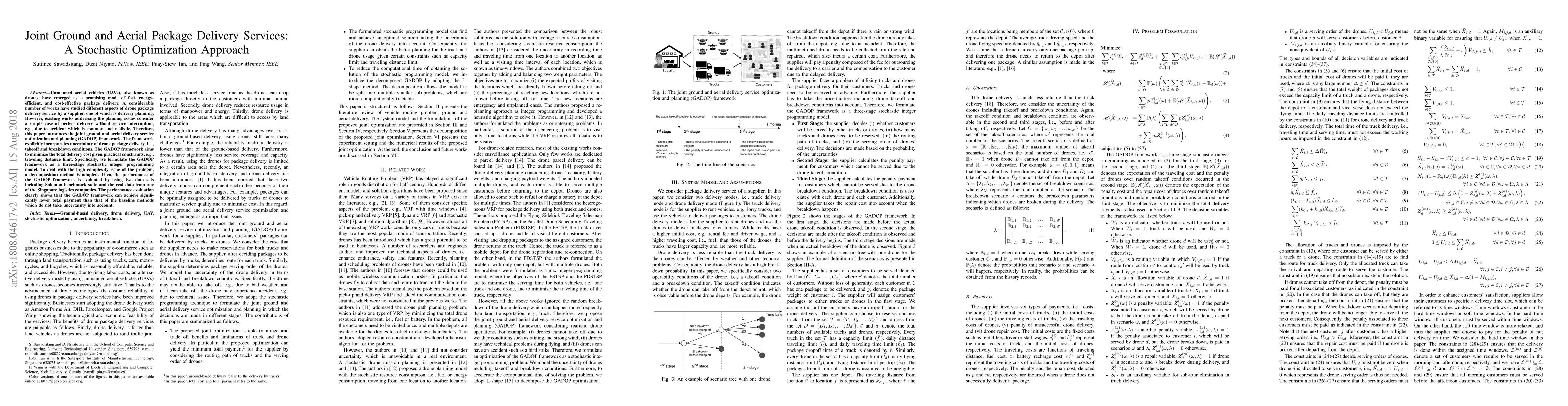 This paper presents a GADOP framework for joint ground and aerial package delivery services, incorporating drone delivery uncertainties like breakdowns. It formulates the problem as a three-stage stochastic integer programming model and uses a decomposition method to optimize delivery costs, demonstrating significant cost reductions compared to baseline methods.