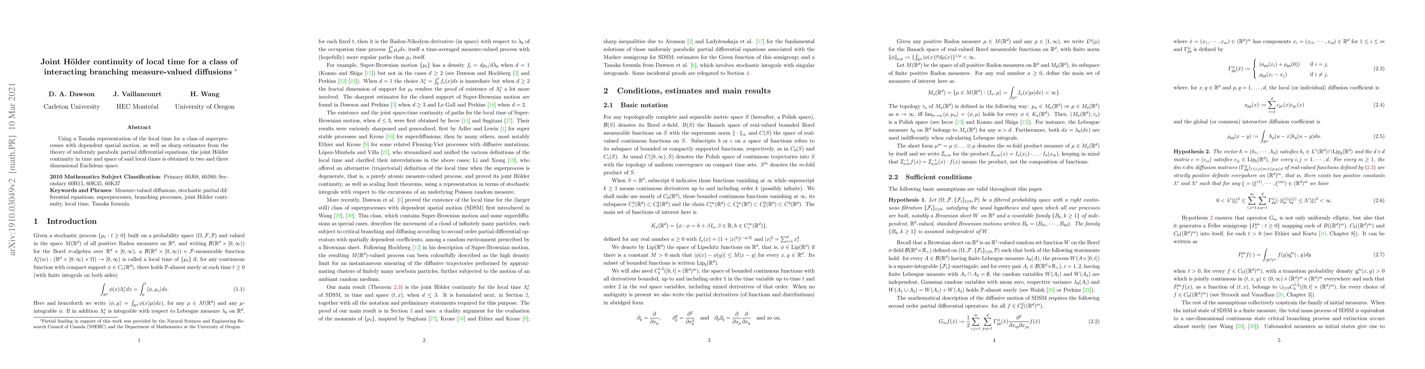 Hao Wang, Jean Vaillancourt, Donald A. Dawson