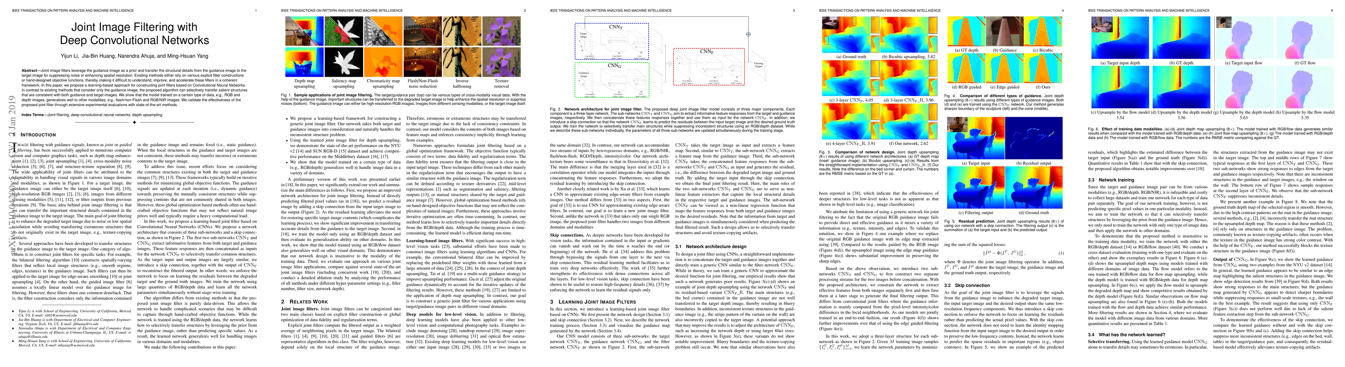 Joint image filters leverage the guidance image as a prior and transfer the structural details from the guidance image to the target image for suppressing noise or enhancing spatial resolution. Existing methods either rely on various explicit filter constructions or hand-designed objective functions, thereby making it difficult to understand, improve, and accelerate these filters in a coherent framework. In this paper, we propose a learning-based approach for constructing joint filters based on Convolutional Neural Networks. In contrast to existing methods that consider only the guidance image, the proposed algorithm can selectively transfer salient structures that are consistent with both guidance and target images. We show that the model trained on a certain type of data, e.g., RGB and depth images, generalizes well to other modalities, e.g., flash/non-Flash and RGB/NIR images. We validate the effectiveness of the proposed joint filter through extensive experimental evaluations with state-of-the-art methods.