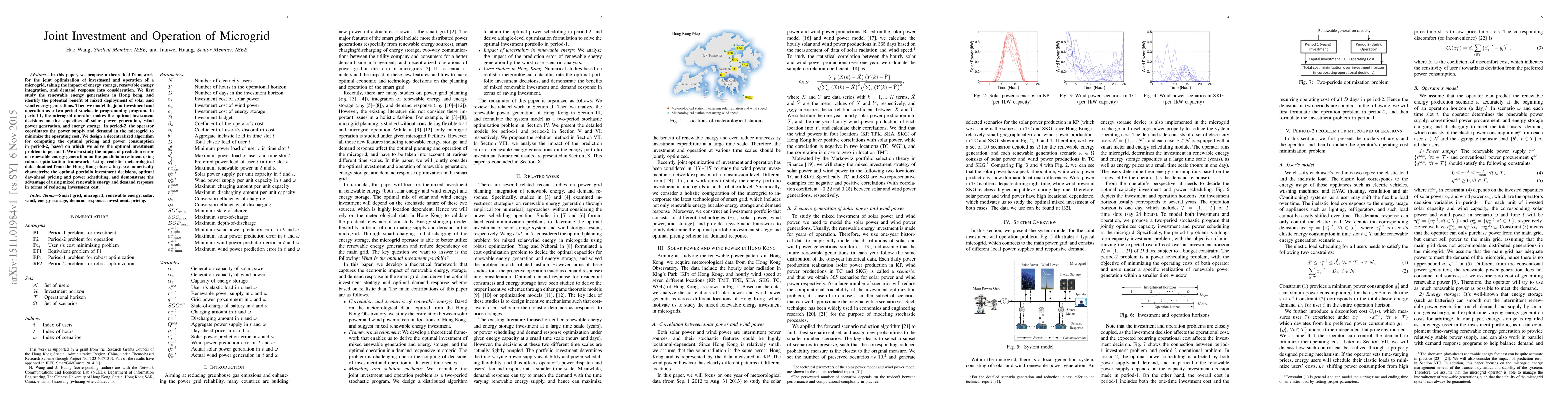 This research paper proposes a framework for jointly optimizing investment and operation of microgrids in Hong Kong, incorporating renewable energy integration and demand response to reduce costs. It demonstrates the benefits of mixed solar and wind energy deployments and suggests improved pricing and power scheduling strategies.