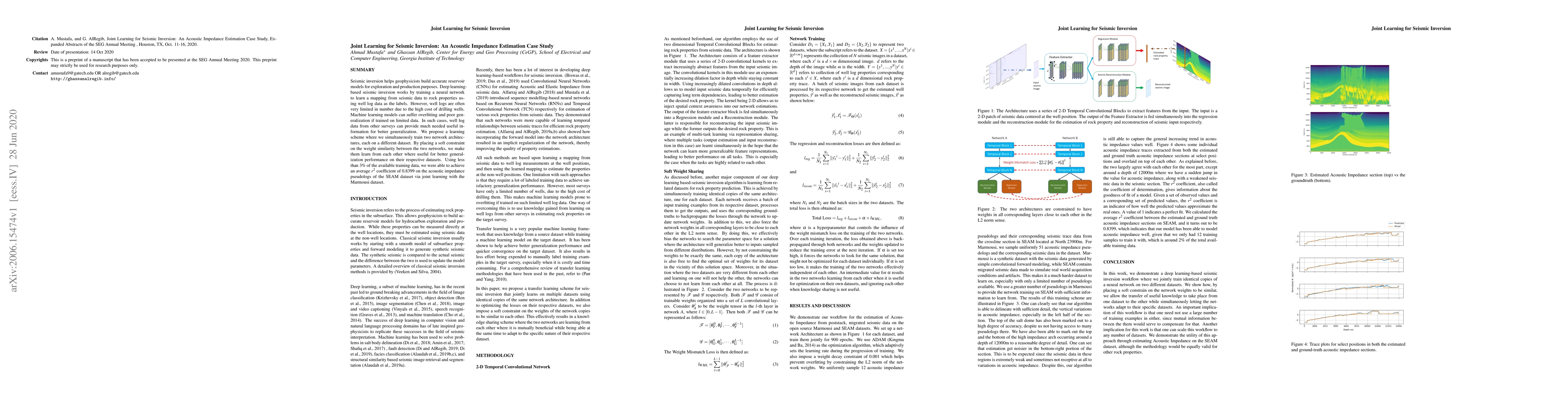 This paper proposes a joint learning scheme for seismic inversion that trains two neural networks on different datasets to improve generalization, achieving an average $r^{2}$ coefficient of 0.8399 on the SEAM dataset using less than 3% of available training data. The method leverages well log data from other surveys to mitigate overfitting and enhance model performance.