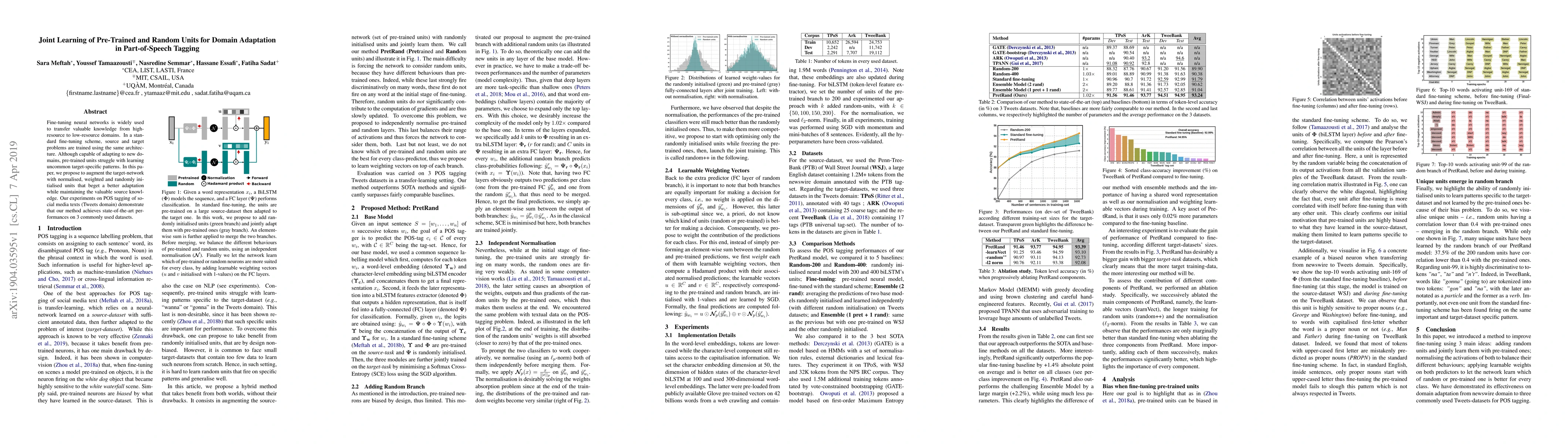 Researchers propose a method that combines pre-trained units with randomly initialised units to improve domain adaptation in part-of-speech tagging, achieving state-of-the-art performance on 3 datasets.