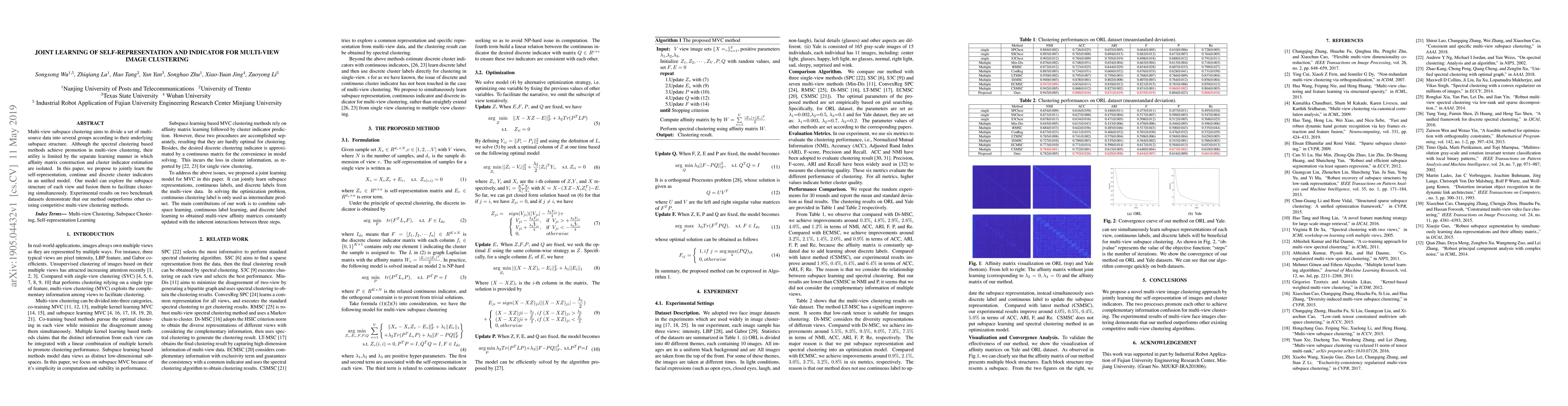This paper proposes a joint learning model to simultaneously learn self-representation and cluster indicators for multi-view image clustering, improving upon separate methods by integrating subspace structure exploration and fusion. Experimental results show superior performance over existing competitive multi-view clustering techniques.