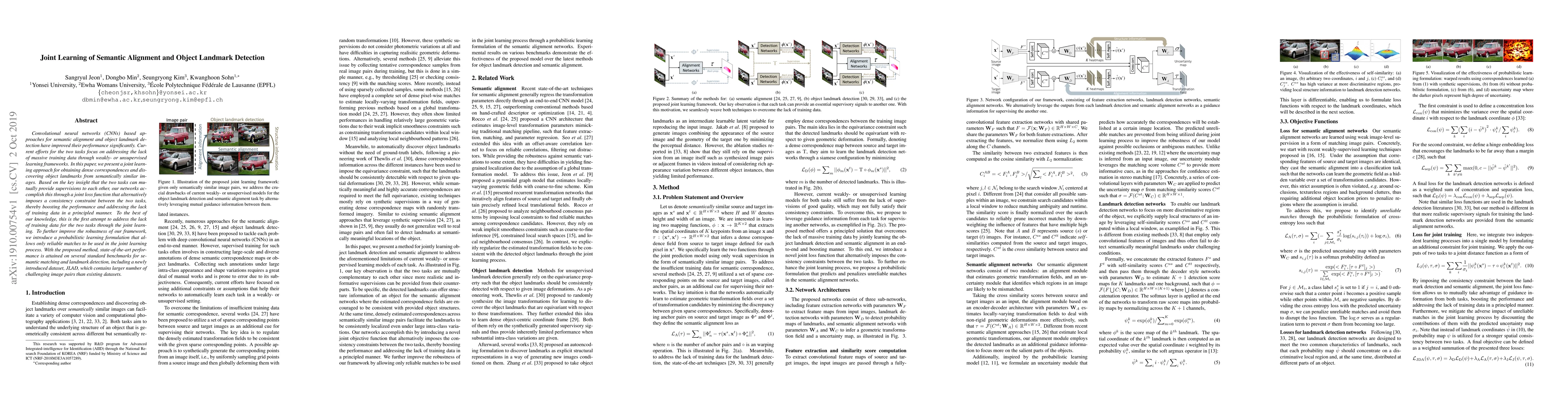 The paper presents a joint learning approach for semantic alignment and object landmark detection using convolutional neural networks. It introduces a probabilistic learning formulation to improve robustness and a joint loss function to mutually supervise the tasks, addressing data scarcity.