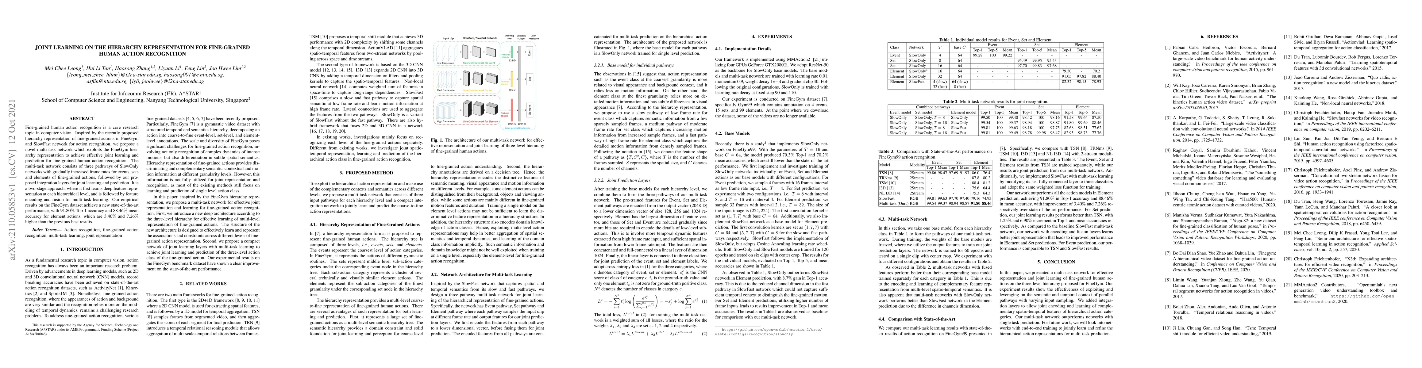 This paper proposes a multi-task network leveraging the FineGym hierarchy representation and SlowFast networks for fine-grained human action recognition, achieving state-of-the-art results with 91.80% Top-1 accuracy and 88.46% mean accuracy on the FineGym dataset. The network employs a two-stage approach for effective joint learning and prediction.