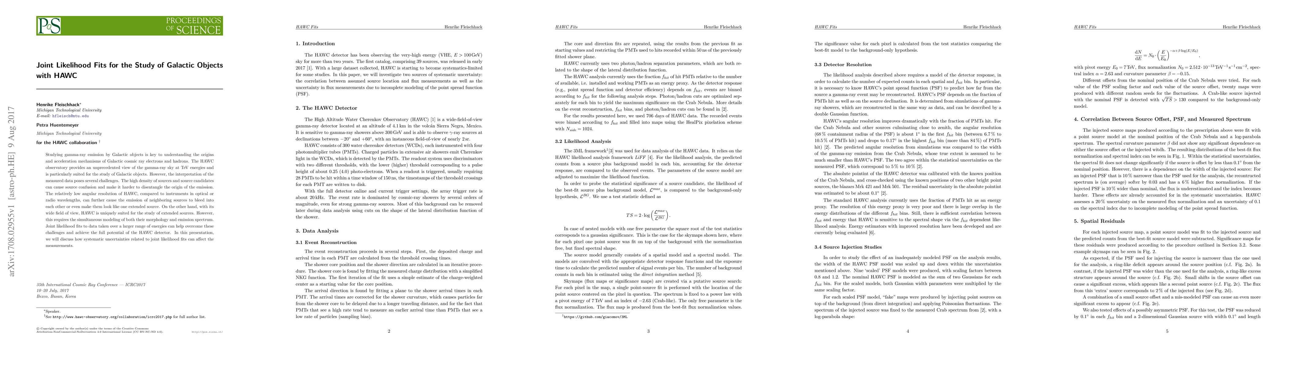 This research paper explores how joint likelihood fits can help analyze gamma-ray emission from Galactic objects using HAWC data, overcoming challenges of source confusion and angular resolution limitations.
