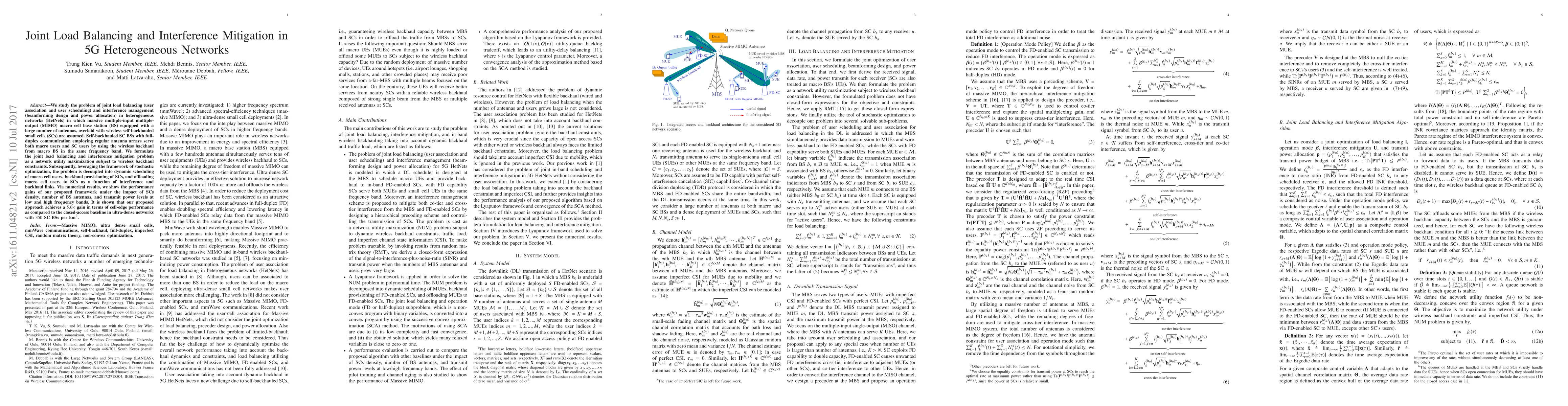 This paper proposes a framework for joint load balancing and interference mitigation in 5G heterogeneous networks (HetNets) with massive MIMO macro cells and self-backhauled small cells. The authors formulate the problem as network utility maximization and use stochastic optimization to achieve dynamic scheduling and offloading, demonstrating significant performance gains, especially for open access full-duplex small cells in ultra-dense deployments.