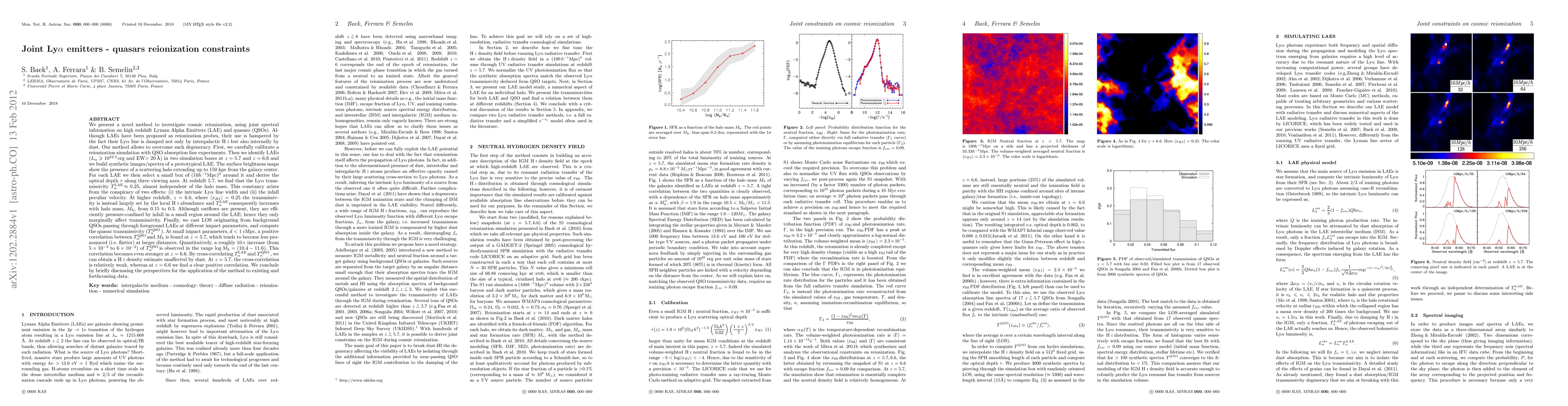 We present a novel method to investigate cosmic reionization, using joint spectral information on high redshift Lyman Alpha Emitters (LAE) and quasars (QSOs). Although LAEs have been proposed as reionization probes, their use is hampered by the fact their Ly{\alpha} line is damped not only by intergalactic HI but also internally by dust. Our method allows to overcome such degeneracy. First, we carefully calibrate a reionization simulation with QSO absorption line experiments. Then we identify LAEs in two simulation boxes at z=5.7 and z=6.6 and we build synthetic images/spectra of a prototypical LAE. At redshift 5.7, we find that the Ly{\alpha} transmissivity (T_LAE) ~ 0.25, almost independent of the halo mass. This constancy arises from the conspiracy of two effects: (i) the intrinsic Ly{\alpha} line width and (ii) the infall peculiar velocity. At higher redshift, z=6.6, where the transmissivity is instead largely set by the local HI abundance and LAE transmissivity consequently increases with halo mass from 0.15 to 0.3. Although outflows are present, they are efficiently pressure-confined by infall in a small region around the LAE; hence they only marginally affect transmissivity. Finally, we cast LOS originating from background QSOs passing through foreground LAEs at different impact parameters, and compute the quasar transmissivity (T_QSO). At smaller impact parameters, d < 1 cMpc, a positive correlation between T_QSO and halo mass is found at z = 5.7, which tends to become less pronounced (i.e. flatter) at larger distances. By cross-correlating T_LAE and T_QSO, we can obtain a HI density estimate unaffected by dust. At z= 5.7, the cross-correlation is relatively weak,whereas at z = 6.6 we find a clear positive correlation. We conclude by briefly discussing the perspectives for the application of the method to existing and forthcoming data.