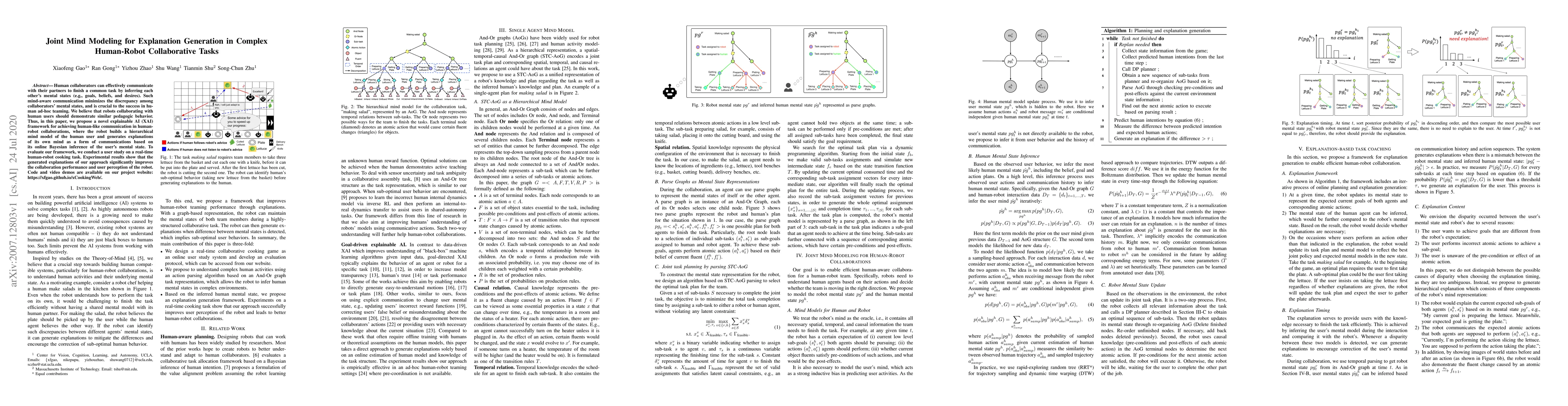 This paper proposes an explainable AI framework for enhancing human-robot collaboration through joint mind modeling, where robots infer users' mental states and communicate explanations to improve teamwork. Experimental results from a cooking task show improved collaboration performance and user perception of the robot.