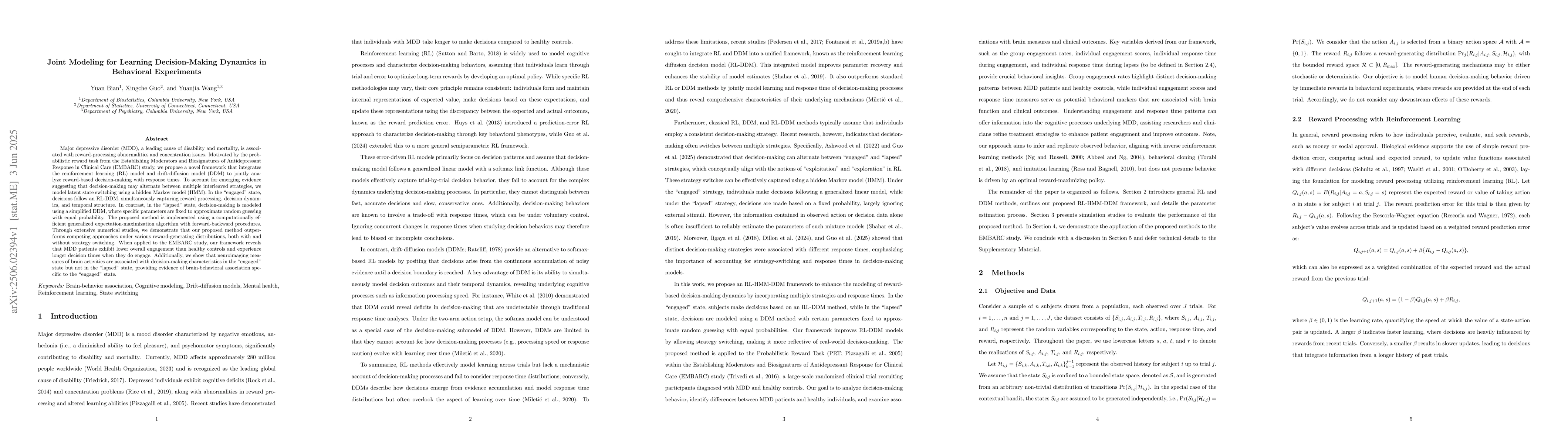 This work is novel by combining RL, DDM, and HMM to capture complex decision-making dynamics in behavioral experiments, particularly in the context of MDD, and by demonstrating brain-behavior associations specific to the 'engaged' decision-making state.