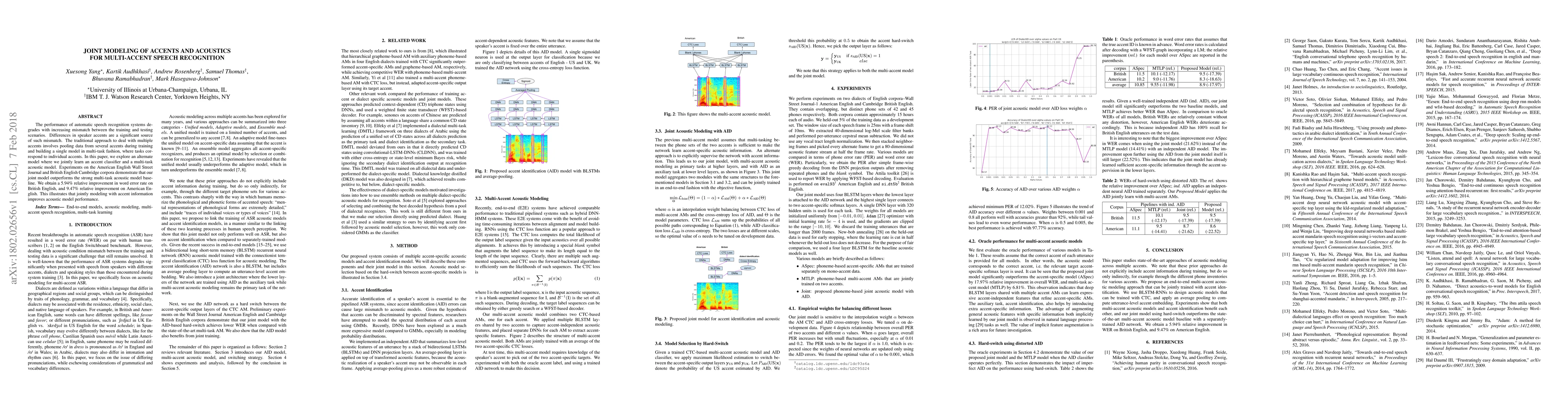 This work differs from previous approaches by explicitly modeling accent information during training, jointly training accent identification with multi-accent acoustic models, and using hard-switching between accent-specific output layers.