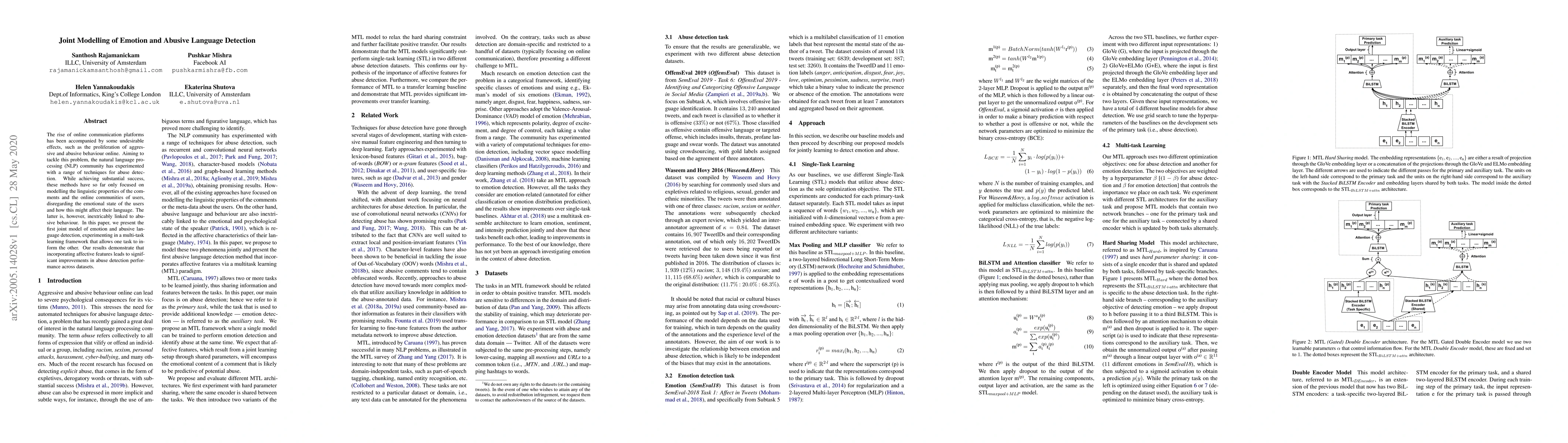 This paper introduces a joint model for detecting abusive language by integrating emotion analysis, showing that considering users' emotional states alongside linguistic features significantly enhances the detection of abusive behavior. The study employs a multi-task learning framework to leverage the relationship between emotion and abusive language.