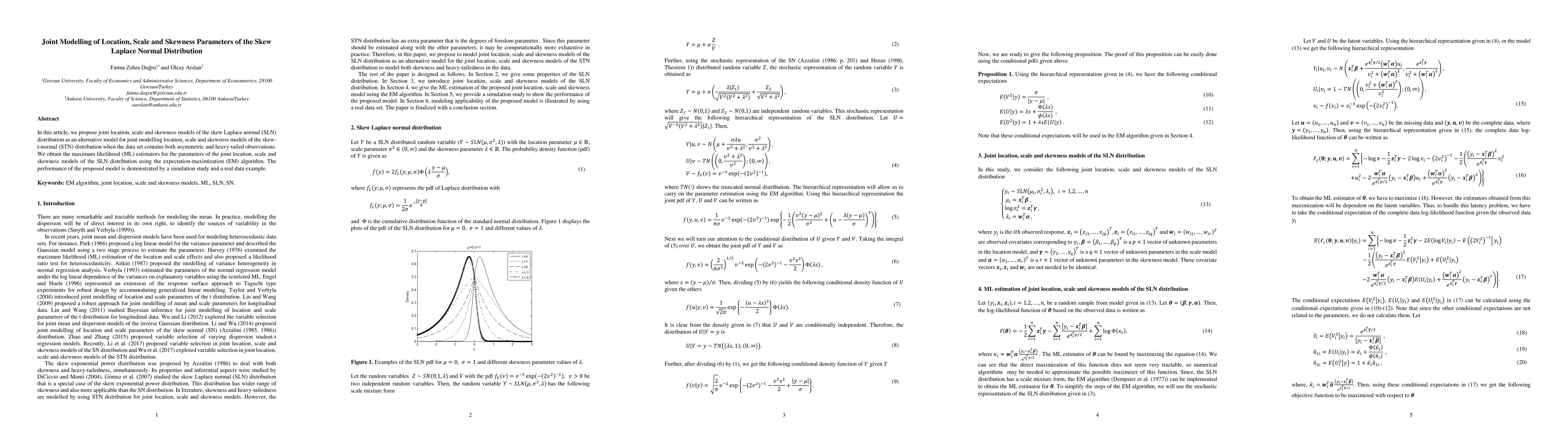 This paper proposes joint location, scale, and skewness models for the skew Laplace normal distribution as an alternative to skew-t-normal models for data with asymmetric and heavy-tailed characteristics. Maximum likelihood estimators are obtained using the EM algorithm, and the model's performance is validated through simulations and real data analysis.
