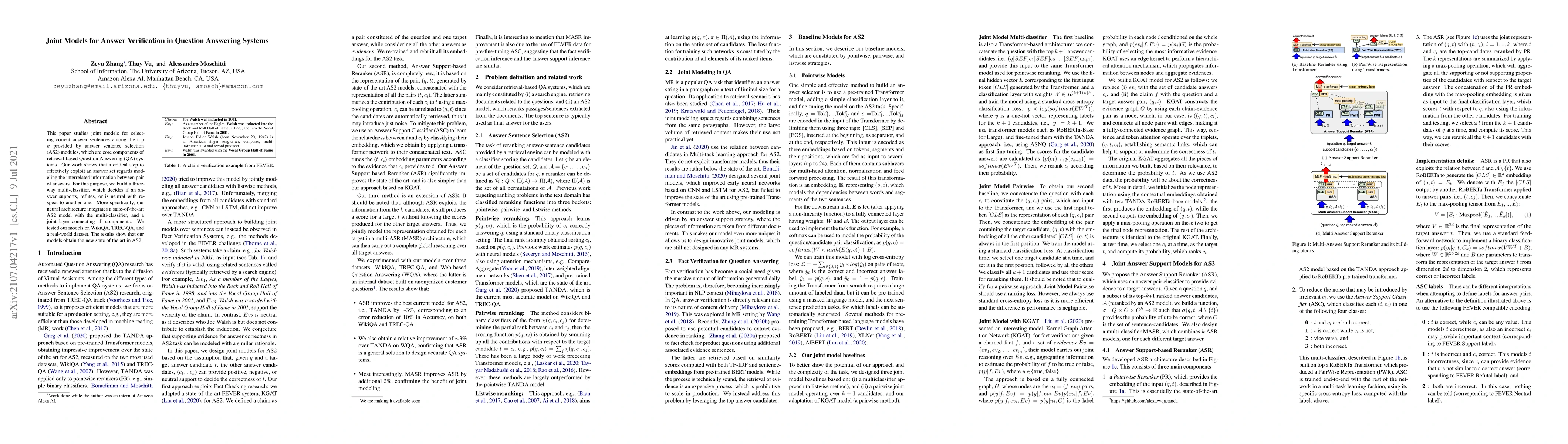 This paper proposes joint models that integrate an answer sentence selection module with a three-way multi-classifier to determine relationships between pairs of answers, achieving state-of-the-art results in selecting correct answers in retrieval-based QA systems. The models were tested on WikiQA, TREC-QA, and a real-world dataset.