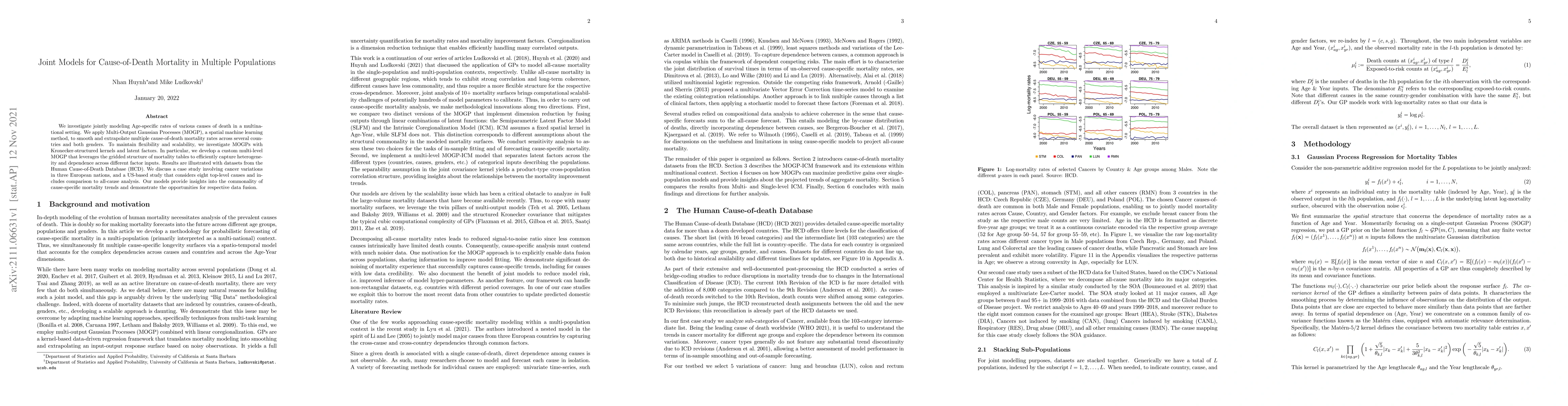 This paper explores joint modeling of age-specific mortality rates for various causes of death across multiple populations using Multi-Output Gaussian Processes (MOGP). The study employs MOGPs with Kronecker-structured kernels and latent factors to efficiently capture heterogeneity and trends, illustrated with data from the Human Cause-of-Death Database, and highlights insights into cause-specific mortality commonalities.