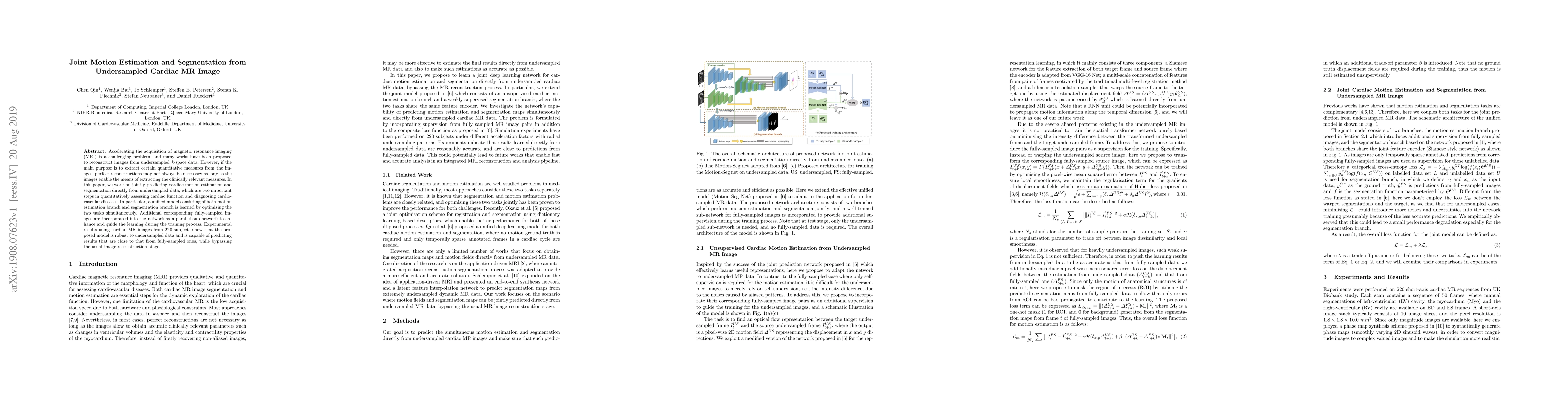 The proposed unified model and parallel well-trained sub-networks approach provide a novel solution for joint motion estimation and segmentation from undersampled cardiac MR data.