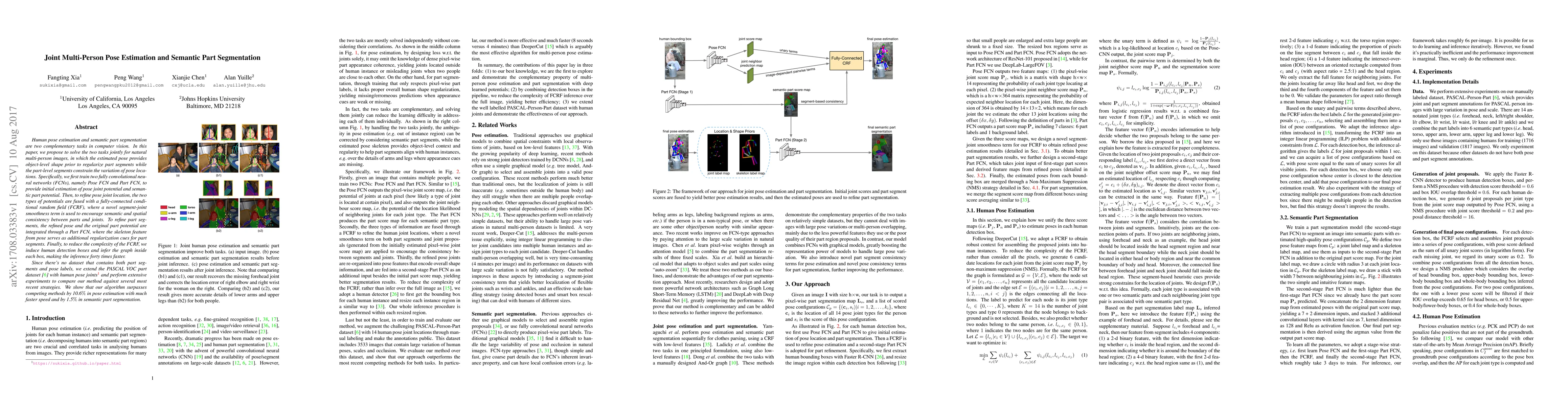 This paper proposes a joint approach to multi-person pose estimation and semantic part segmentation using convolutional neural networks and a fully-connected conditional random field to refine both pose and part segmentation, achieving superior performance on a newly extended dataset.