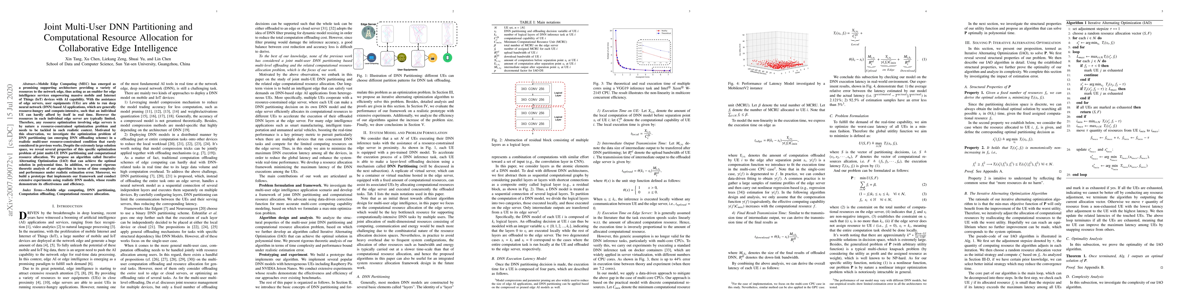 This paper proposes an optimization algorithm for joint multi-user DNN partitioning and computational resource allocation in resource-constrained edge servers, addressing a largely unexplored problem in Mobile Edge Computing. The Iterative Alternating Optimization (IAO) algorithm achieves optimal solutions in polynomial time, supported by theoretical analysis and validated through experiments with realistic DNN models.