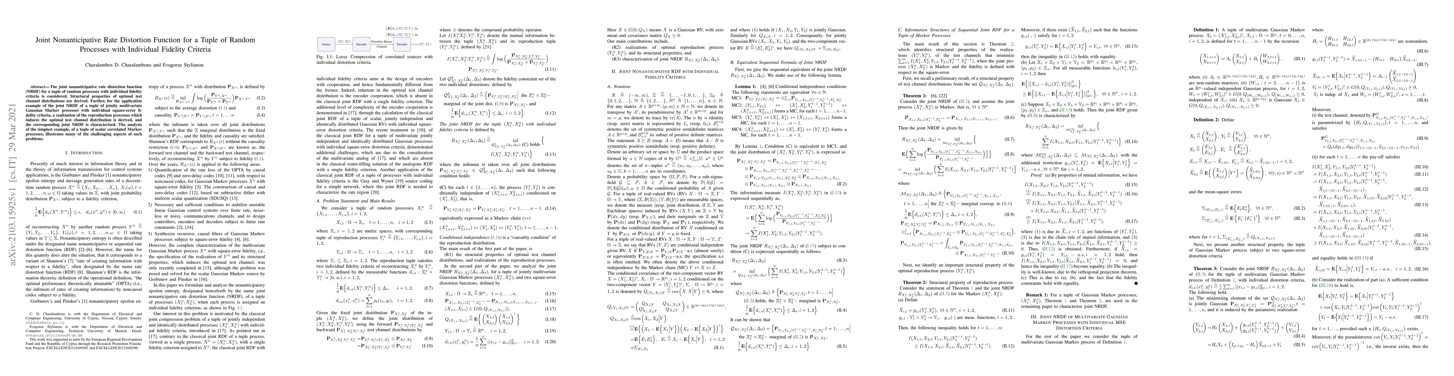 This paper explores the joint nonanticipative rate distortion function for multiple random processes with individual fidelity criteria, deriving optimal test channel distributions and characterizing the joint NRDF for multivariate Gaussian Markov processes. The analysis of scalar correlated Markov processes highlights the complexities involved.