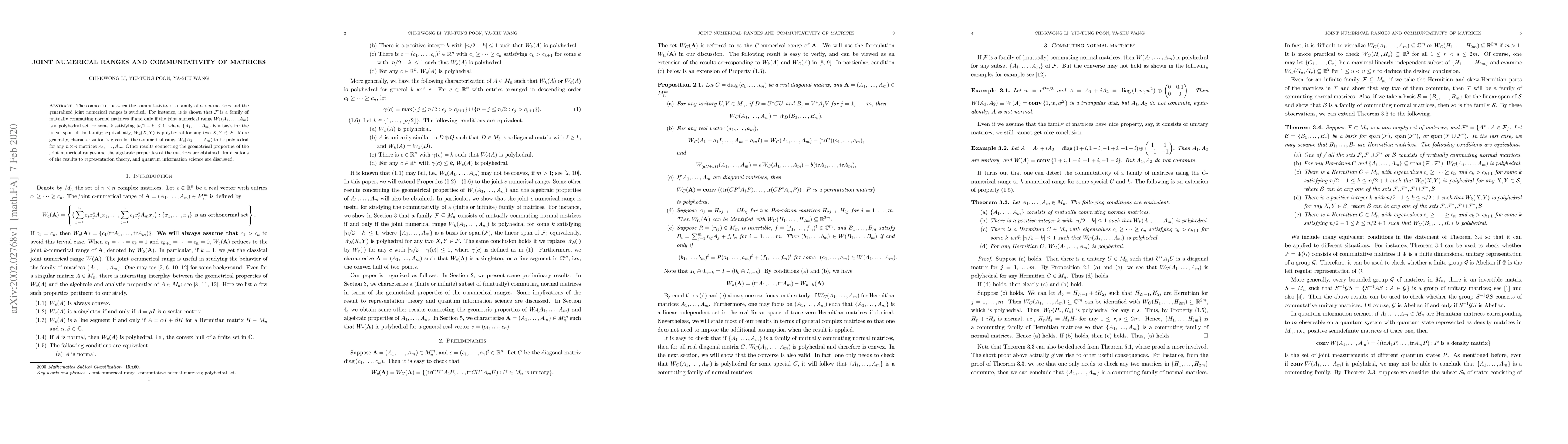 This paper studies the relationship between the commutativity of a family of normal matrices and their generalized joint numerical ranges, proving that such families commute if and only if certain joint numerical ranges are polyhedral. It also discusses broader implications for representation theory and quantum information science.