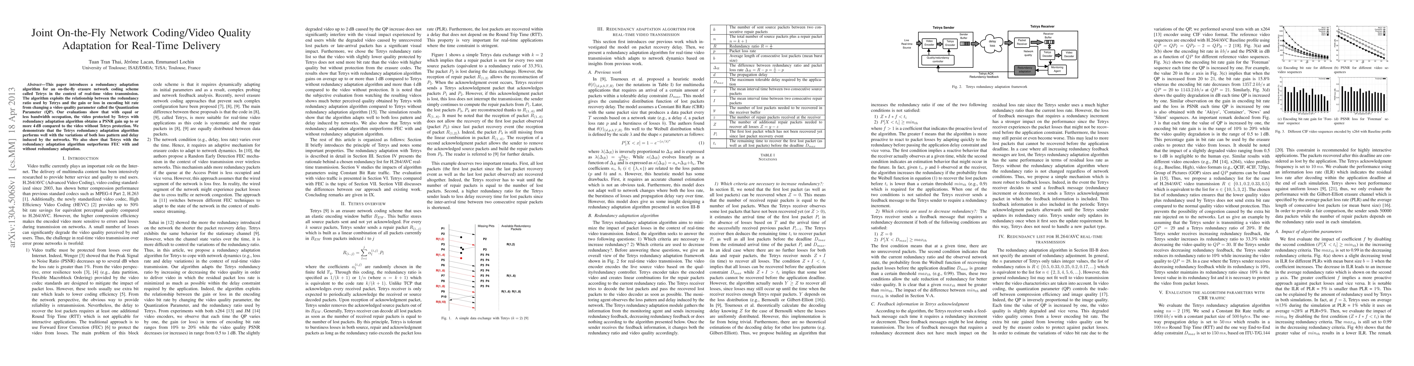 Researchers developed an algorithm to adapt redundancy in network coding for real-time video transmission, achieving up to 4 dB PSNR gain with equal or less bandwidth occupation.