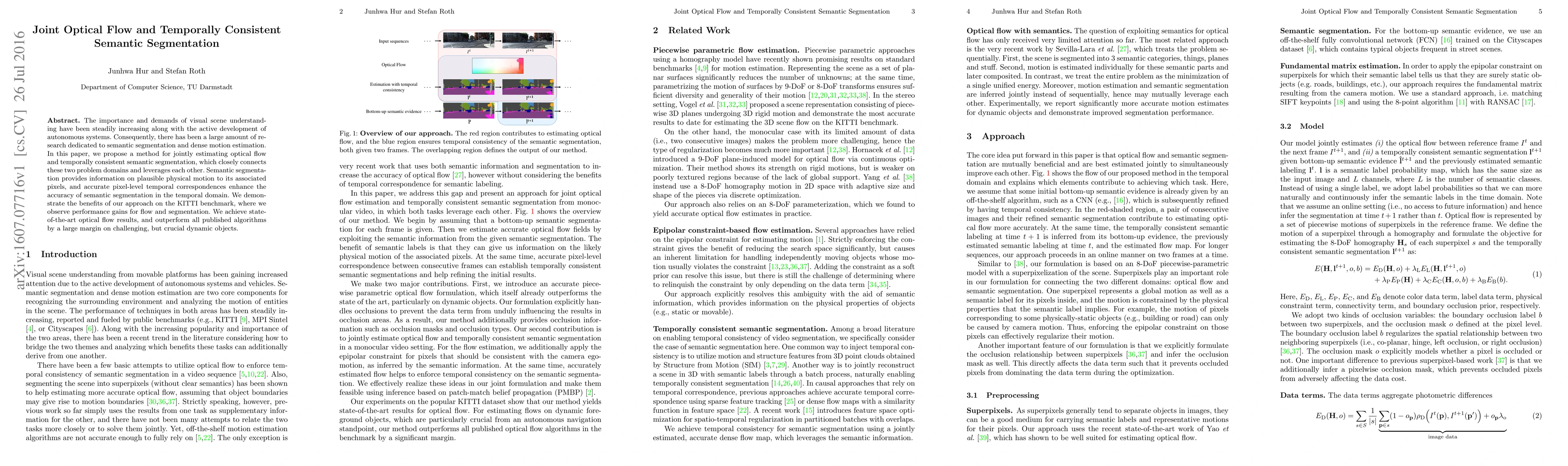 This paper proposes a method for jointly estimating optical flow and temporally consistent semantic segmentation, leveraging the benefits of both to enhance each other's accuracy. The approach achieves state-of-the-art optical flow results and outperforms existing algorithms on the KITTI benchmark, particularly for dynamic objects.