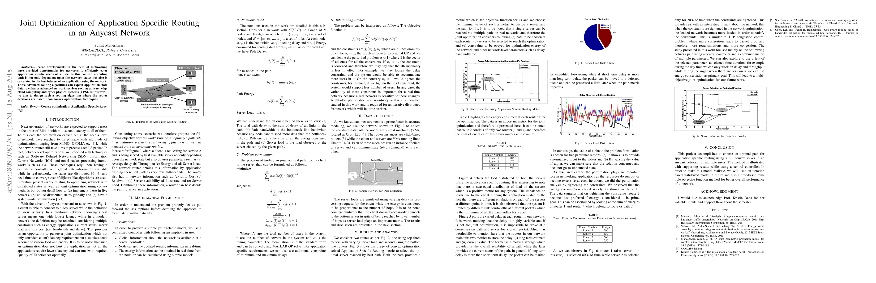 Recent developments in the field of Networking have provided opportunities for networks to efficiently cater application specific needs of a user. In this context, a routing path is not only dependent upon the network states but also is calculated in the best interest of an application using the network. These advanced routing algorithms can exploit application state data to enhance advanced network services such as anycast, edge cloud computing and cyber physical systems (CPS). In this work, we aim to design such a routing algorithm where the router decisions are based upon convex optimization techniques.