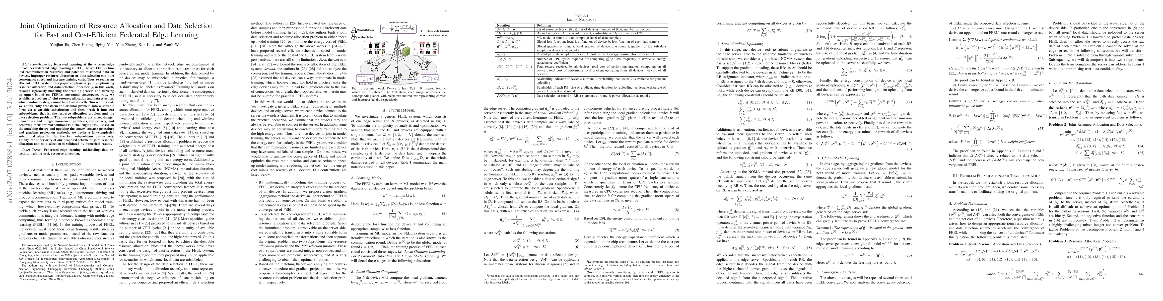 This paper presents a method for jointly optimizing resource allocation and data selection to enhance the efficiency of federated edge learning (FEEL). The authors develop a suboptimal algorithm leveraging matching theory and convex-concave procedures to address the complex mixed-integer non-convex problems derived from the optimization problem, ultimately validated through numerical results.
