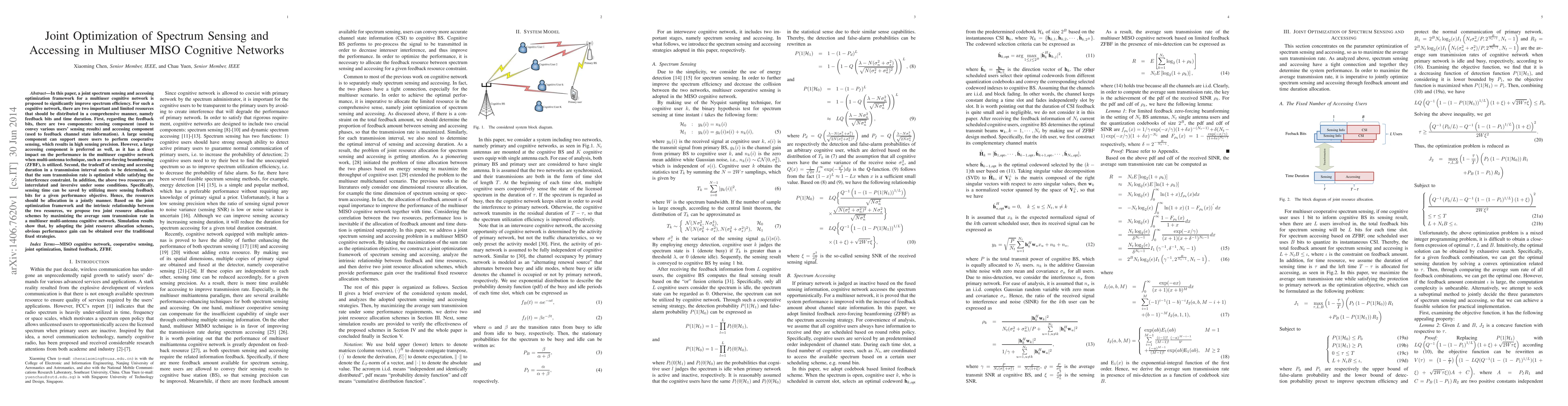 This paper proposes a joint optimization framework for spectrum sensing and accessing in multiuser cognitive networks to enhance spectrum efficiency. It introduces two resource allocation schemes to maximize the average sum transmission rate while balancing feedback bits and time duration, demonstrating significant performance gains over traditional fixed strategies.