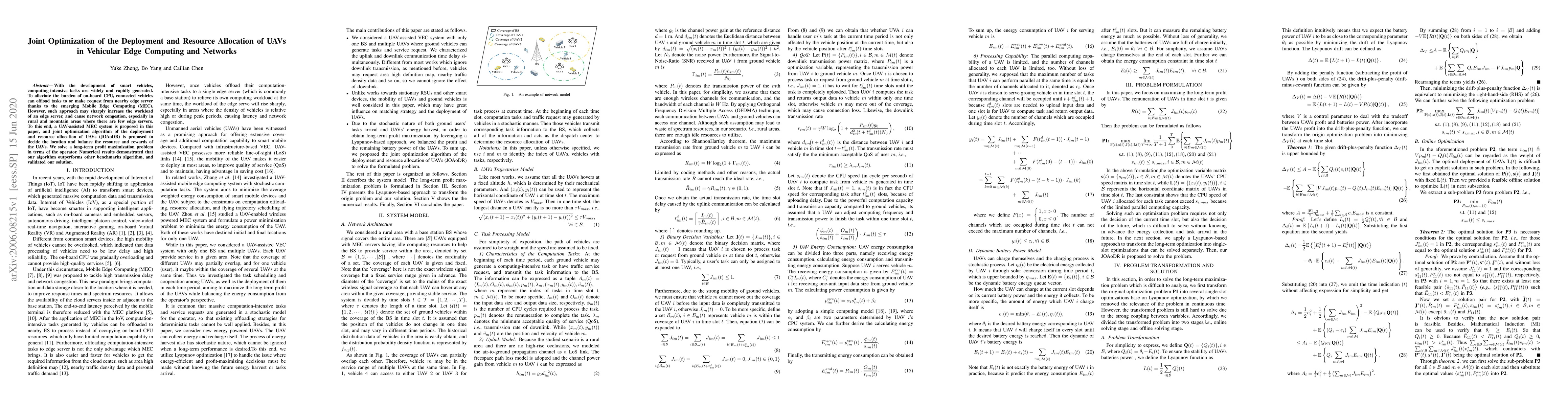 With the development of smart vehicles, computing-intensive tasks are widely and rapidly generated. To alleviate the burden of on-board CPU, connected vehicles can offload tasks to or make request from nearby edge server thanks to the emerging Mobile Edge Computing (MEC). However, such approach may sharply increase the workload of an edge server, and cause network congestion, especially in rural and mountain areas where there are few edge servers. To this end, a UAV-assisted MEC system is proposed in this paper, and joint optimization algorithm of the deployment and resource allocation of UAVs (JOAoDR) is proposed to decide the location and balance the resource and rewards of the UAVs. We solve a long-term profit maximization problem in terms of the operator. Numerical results demonstrated that our algorithm outperforms other benchmarks algorithm, and validated our solution.