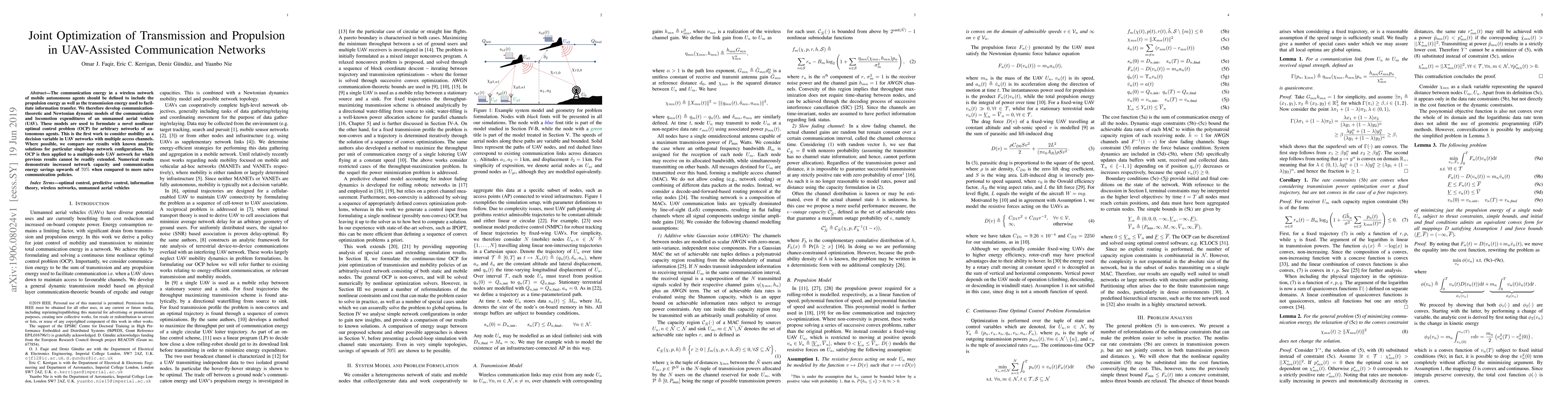 The communication energy in a wireless network of mobile autonomous agents should be defined to include the propulsion energy as well as the transmission energy used to facilitate information transfer. We therefore develop communicationtheoretic and Newtonian dynamic models of the communication and locomotion expenditures of an unmanned aerial vehicle (UAV). These models are used to formulate a novel nonlinear optimal control problem (OCP) for arbitrary networks of autonomous agents. This is the first work to consider mobility as a decision variable in UAV networks with multiple access channels. Where possible, we compare our results with known analytic solutions for particular single-hop network configurations. The OCP is then applied to a multiple-node UAV network for which previous results cannot be readily extended. Numerical results demonstrate increased network capacity and communication energy savings upwards of 70% when compared to more naive communication policies.