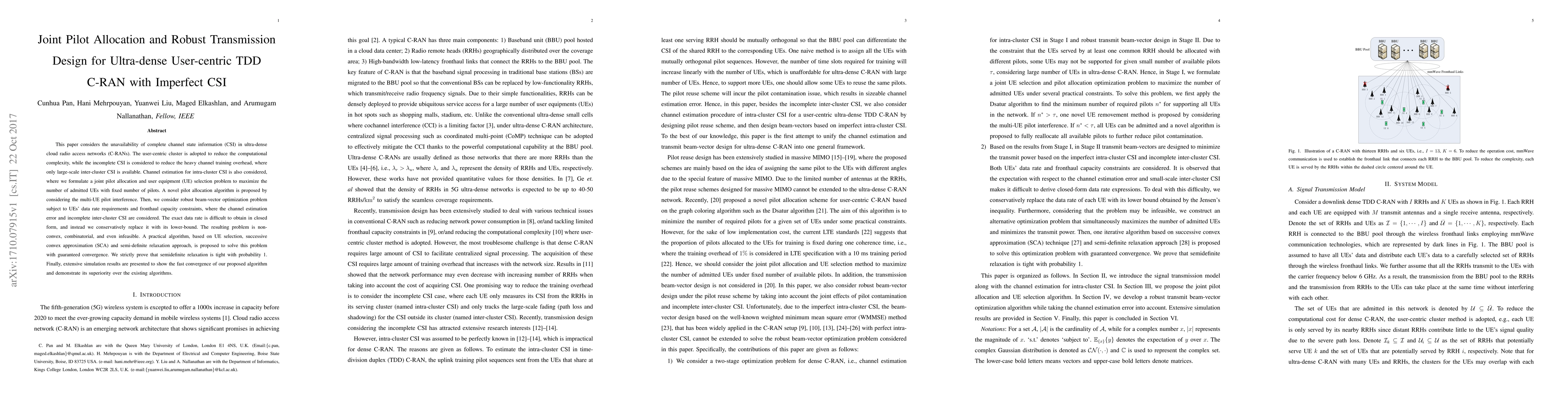 This paper considers the unavailability of complete channel state information (CSI) in ultra-dense cloud radio access networks (C-RANs). The user-centric cluster is adopted to reduce the computational complexity, while the incomplete CSI is considered to reduce the heavy channel training overhead, where only large-scale inter-cluster CSI is available. Channel estimation for intra-cluster CSI is also considered, where we formulate a joint pilot allocation and user equipment (UE) selection problem to maximize the number of admitted UEs with fixed number of pilots. A novel pilot allocation algorithm is proposed by considering the multi-UE pilot interference. Then, we consider robust beam-vector optimization problem subject to UEs' data rate requirements and fronthaul capacity constraints, where the channel estimation error and incomplete inter-cluster CSI are considered. The exact data rate is difficult to obtain in closed form, and instead we conservatively replace it with its lower-bound. The resulting problem is non-convex, combinatorial, and even infeasible. A practical algorithm, based on UE selection, successive convex approximation (SCA) and semi-definite relaxation approach, is proposed to solve this problem with guaranteed convergence. We strictly prove that semidefinite relaxation is tight with probability 1. Finally, extensive simulation results are presented to show the fast convergence of our proposed algorithm and demonstrate its superiority over the existing algorithms.