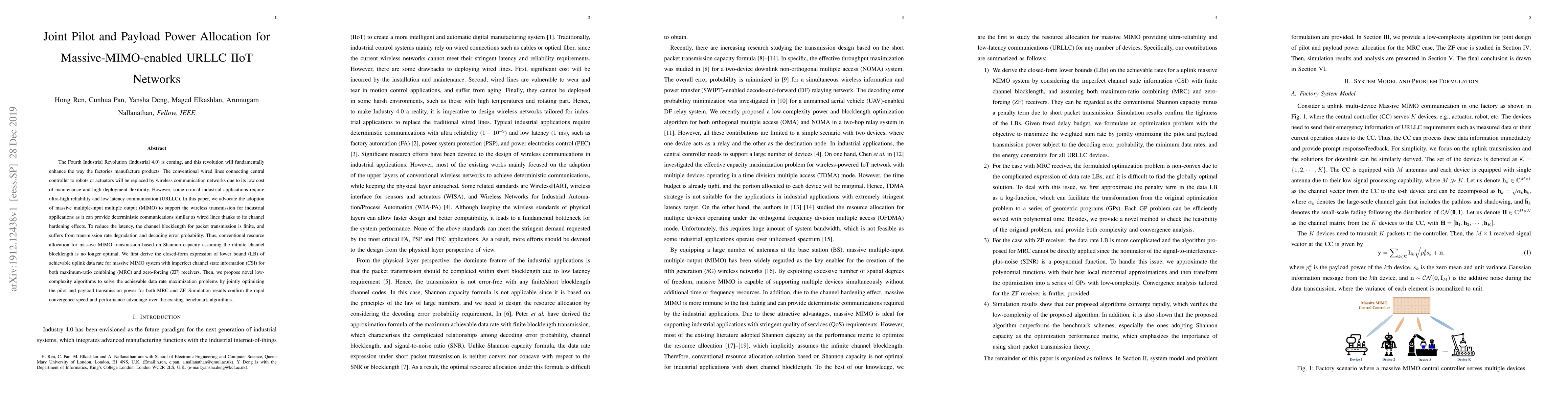 This paper proposes joint pilot and payload power allocation for massive-MIMO systems to support ultra-reliable low-latency communication (URLLC) in Industrial Internet of Things (IIoT) networks. It introduces low-complexity algorithms to maximize achievable data rates by optimizing power allocation for both maximum-ratio combining and zero-forcing receivers, demonstrating superior performance compared to conventional methods.