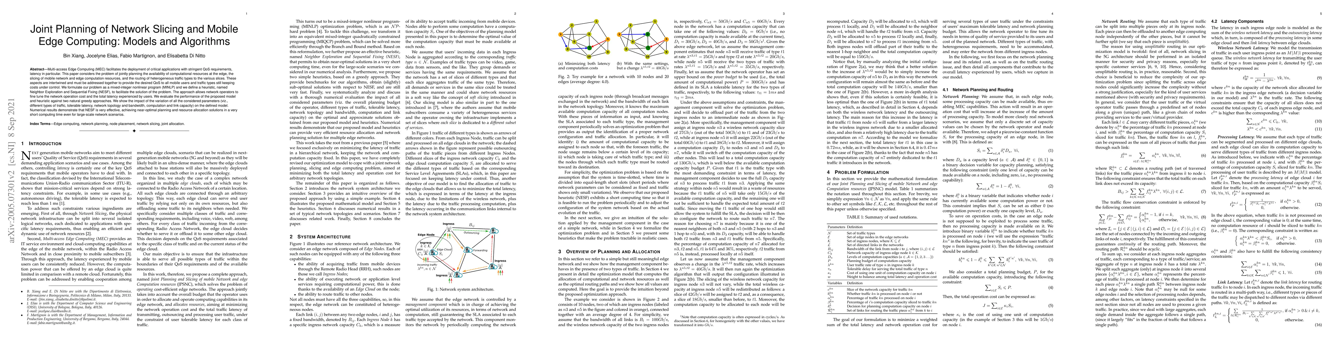 This paper develops a joint planning model for network slicing and mobile edge computing, proposing a heuristic approach called Neighbor Exploration and Sequential Fixing that achieves near-optimal solutions in a short time frame.