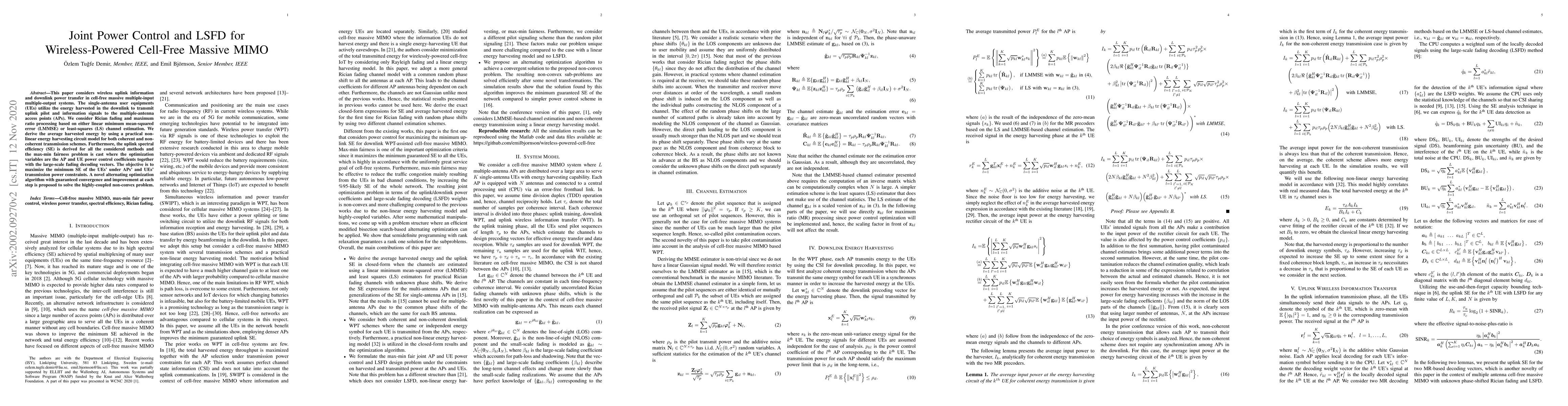 This research develops methods to optimize energy transfer and data communication in advanced wireless networks where devices harvest energy from the network to transmit data. It proposes an algorithm to fairly maximize data rates for all users while managing power constraints, improving the efficiency of such systems.