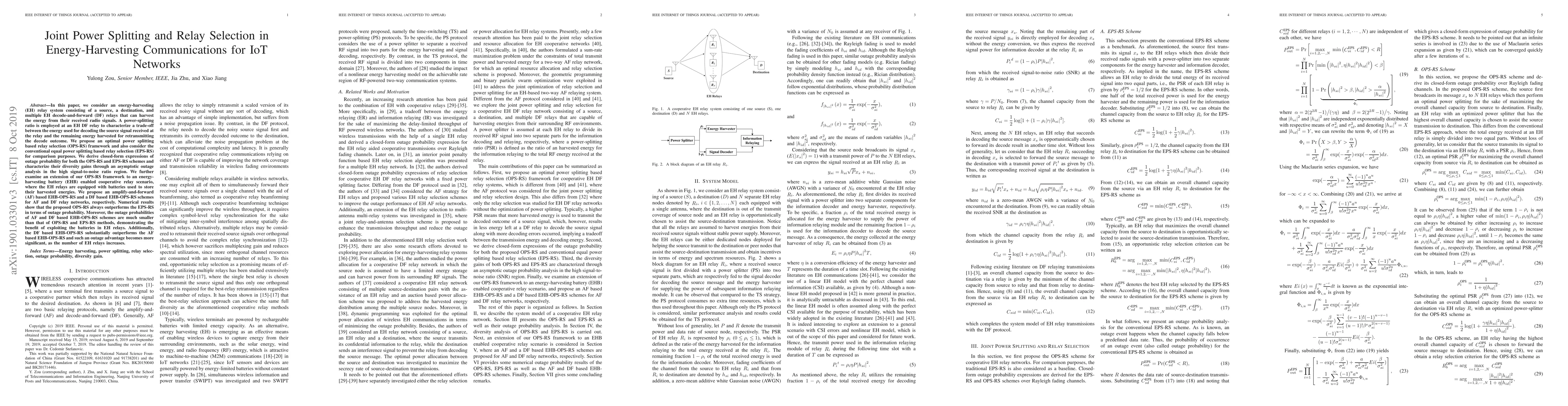 This paper proposes an optimal power splitting and relay selection framework for energy-harvesting relay systems in IoT networks, demonstrating its superior performance over conventional equal power splitting methods. It also extends the framework to battery-equipped relays, showing significant improvements in outage probability.