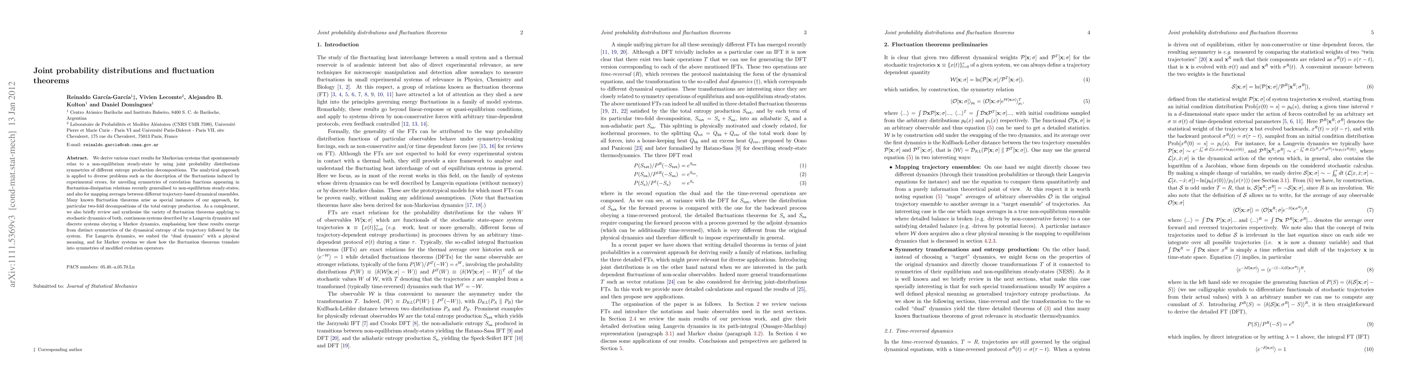 We derive various exact results for Markovian systems that spontaneously relax to a non-equilibrium steady-state by using joint probability distributions symmetries of different entropy production decompositions. The analytical approach is applied to diverse problems such as the description of the fluctuations induced by experimental errors, for unveiling symmetries of correlation functions appearing in fluctuation-dissipation relations recently generalised to non-equilibrium steady-states, and also for mapping averages between different trajectory-based dynamical ensembles. Many known fluctuation theorems arise as special instances of our approach, for particular two-fold decompositions of the total entropy production. As a complement, we also briefly review and synthesise the variety of fluctuation theorems applying to stochastic dynamics of both, continuous systems described by a Langevin dynamics and discrete systems obeying a Markov dynamics, emphasising how these results emerge from distinct symmetries of the dynamical entropy of the trajectory followed by the system For Langevin dynamics, we embed the "dual dynamics" with a physical meaning, and for Markov systems we show how the fluctuation theorems translate into symmetries of modified evolution operators.