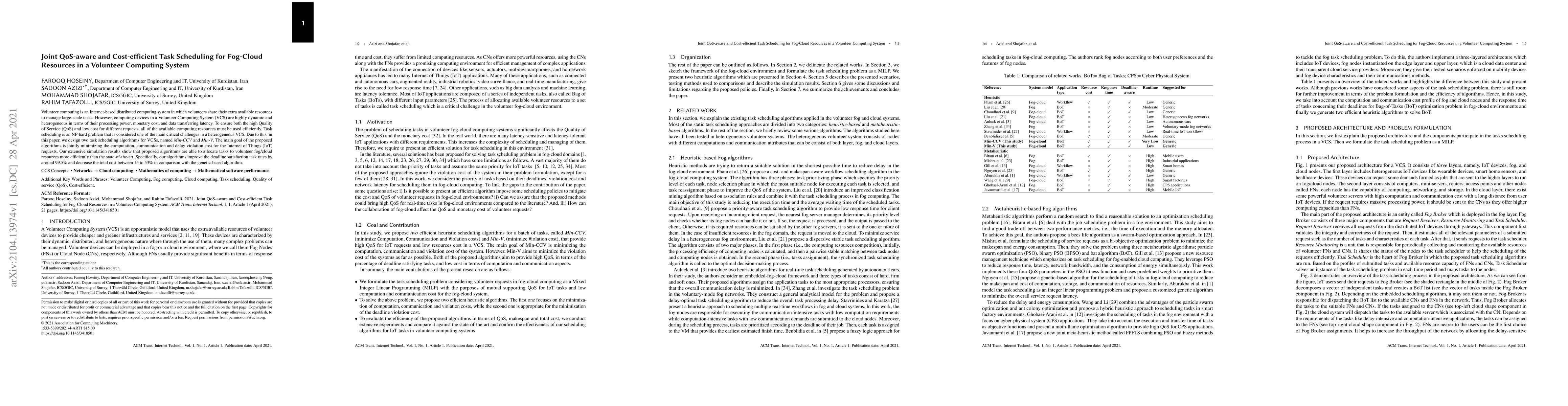 Volunteer computing is an Internet-based distributed computing system in which volunteers share their extra available resources to manage large-scale tasks. However, computing devices in a Volunteer Computing System (VCS) are highly dynamic and heterogeneous in terms of their processing power, monetary cost, and data transferring latency. To ensure both the high Quality of Service (QoS) and low cost for different requests, all of the available computing resources must be used efficiently. Task scheduling is an NP-hard problem that is considered one of the main critical challenges in a heterogeneous VCS. Due to this, in this paper, we design two task scheduling algorithms for VCSs, named Min-CCV and Min-V. The main goal of the proposed algorithms is jointly minimizing the computation, communication and delay violation cost for the Internet of Things (IoT) requests. Our extensive simulation results show that proposed algorithms are able to allocate tasks to volunteer fog/cloud resources more efficiently than the state-of-the-art. Specifically, our algorithms improve the deadline satisfaction task rates by around 99.5% and decrease the total cost between 15 to 53% in comparison with the genetic-based algorithm.