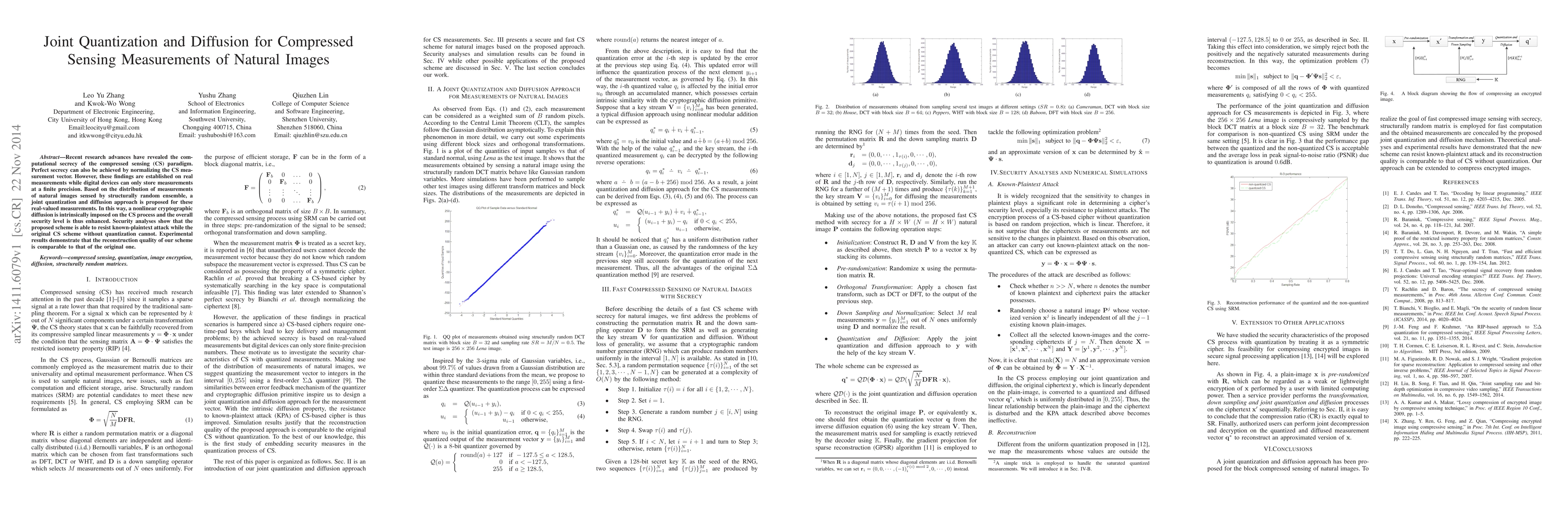 A new approach combines joint quantization and diffusion to enhance security in compressed sensing measurements of natural images, showing improved resistance to known-plaintext attacks and comparable reconstruction quality.
