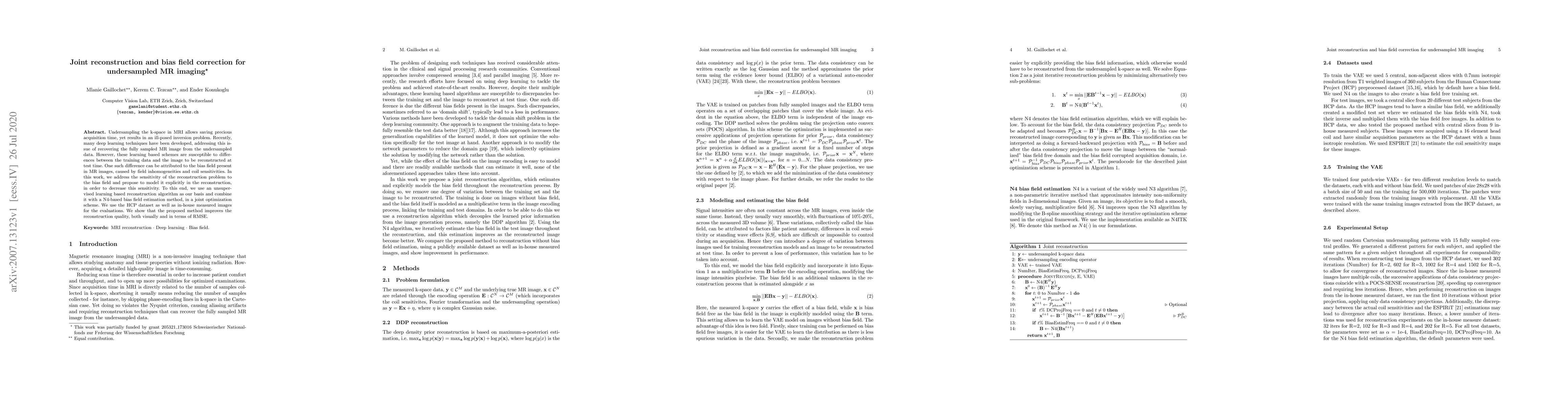 This research paper proposes a joint reconstruction method for undersampled MRI images that accounts for bias fields to improve image quality, using a combination of unsupervised learning and N4-based bias field estimation.