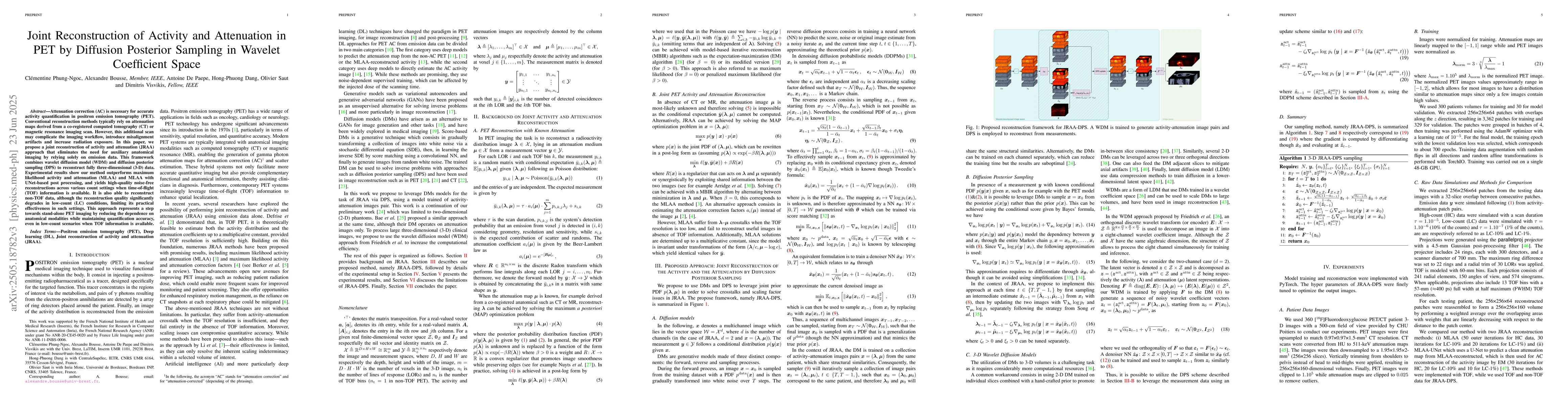 The introduction of a joint reconstruction framework combining wavelet diffusion model and diffusion posterior sampling for accurate activity and attenuation estimation using only emission data.