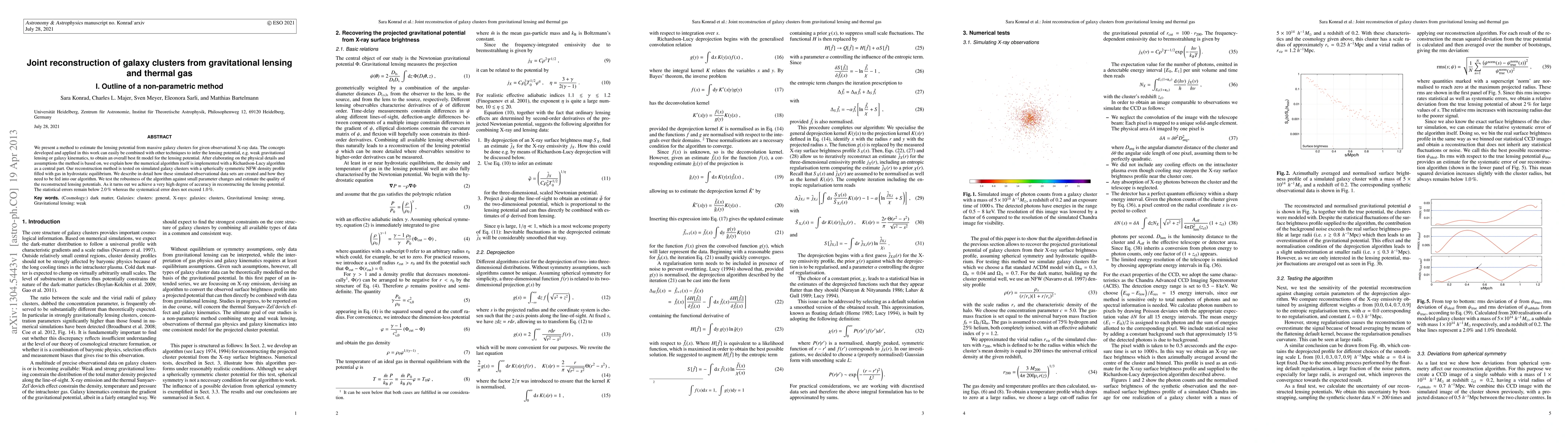 We present a method to estimate the lensing potential from massive galaxy clusters for given observational X-ray data. The concepts developed and applied in this work can easily be combined with other techniques to infer the lensing potential, e.g. weak gravitational lensing or galaxy kinematics, to obtain an overall best fit model for the lensing potential. After elaborating on the physical details and assumptions the method is based on, we explain how the numerical algorithm itself is implemented with a Richardson-Lucy algorithm as a central part. Our reconstruction method is tested on simulated galaxy clusters with a spherically symmetric NFW density profile filled with gas in hydrostatic equilibrium. We describe in detail how these simulated observational data sets are created and how they need to be fed into our algorithm. We test the robustness of the algorithm against small parameter changes and estimate the quality of the reconstructed lensing potentials. As it turns out we achieve a very high degree of accuracy in reconstructing the lensing potential. The statistical errors remain below 2.0% whereas the systematical error does not exceed 1.0%.