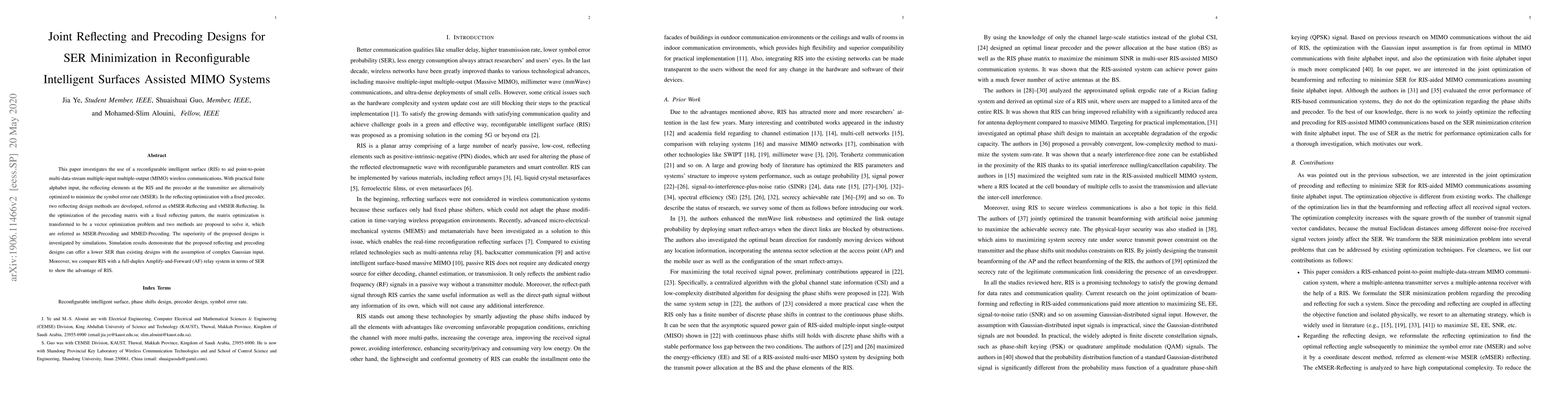 This paper proposes joint reflecting and precoding designs to minimize the symbol error rate (SER) in RIS-assisted MIMO systems. It introduces two reflecting optimization methods and two precoding optimization methods, demonstrating superior SER performance compared to existing designs.